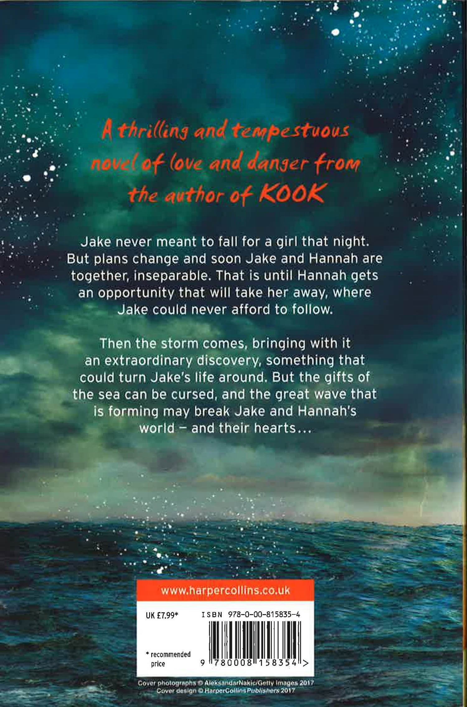 A thrilling and tempestuous novel of love and danger from the author of KOOK. Every storm breaks in the end... Jake never meant to fall for a girl that night. But plans change and soon Jake and Hannah are together, inseparable. That is, until Hannah gets an opportunity that will take her away, where Jake could never afford to follow. Then the storm comes, bringing with it an extraordinary discovery, something that could turn Jake's life around. But the gifts of the sea can be cursed, and the great wave that is forming may break Jake and Hannah's world - and their hearts...