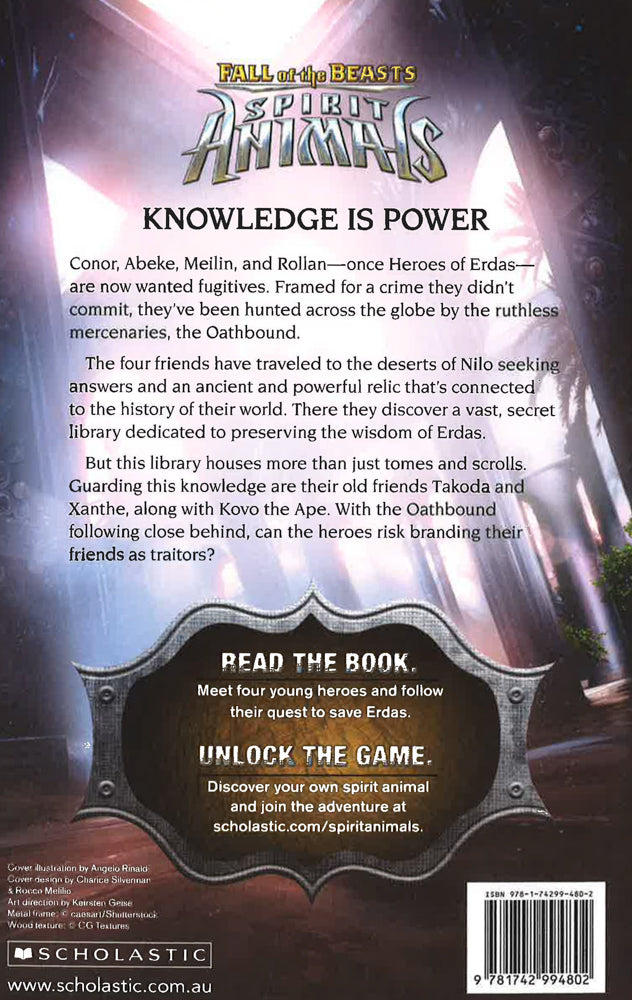 Now fugitives, the young heroes must clear their names while evading the ruthless Oathbound. They head for a hidden refuge of learning in Nilo, hoping to discover the locations of the other two gifts. Guarding this knowledge are their old friends Takoda and Xanthe, along with Kovo the Ape.