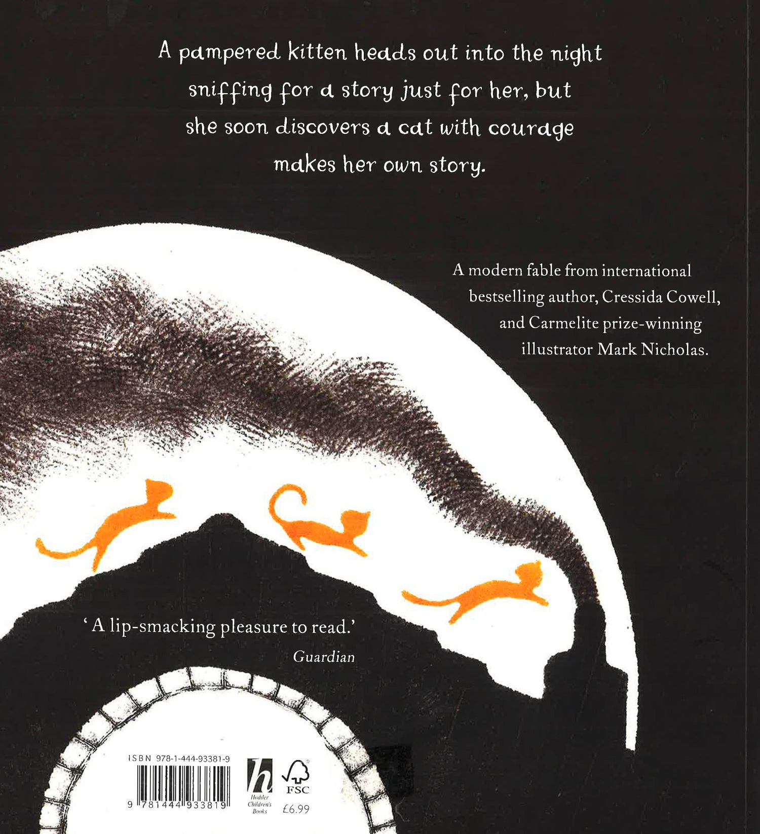 Written by Cressida Cowell, creator of the bestselling How to train Your Dragon series and with beautiful illustrations by Mark Nicholas, winner of the Carmelite Prize, comes a lyrical fable of a curious kitten who ventures out for the first time.