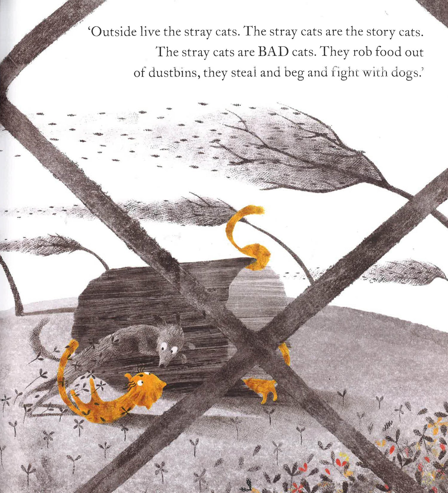 Tantrum O'Furrily's kittens are hungry and doubt that a story can ease a stray cat's rumbling stomach. They soon learn that stories are powerful, and that if you're courageous you might find a saucer of milk at the end of that story.
