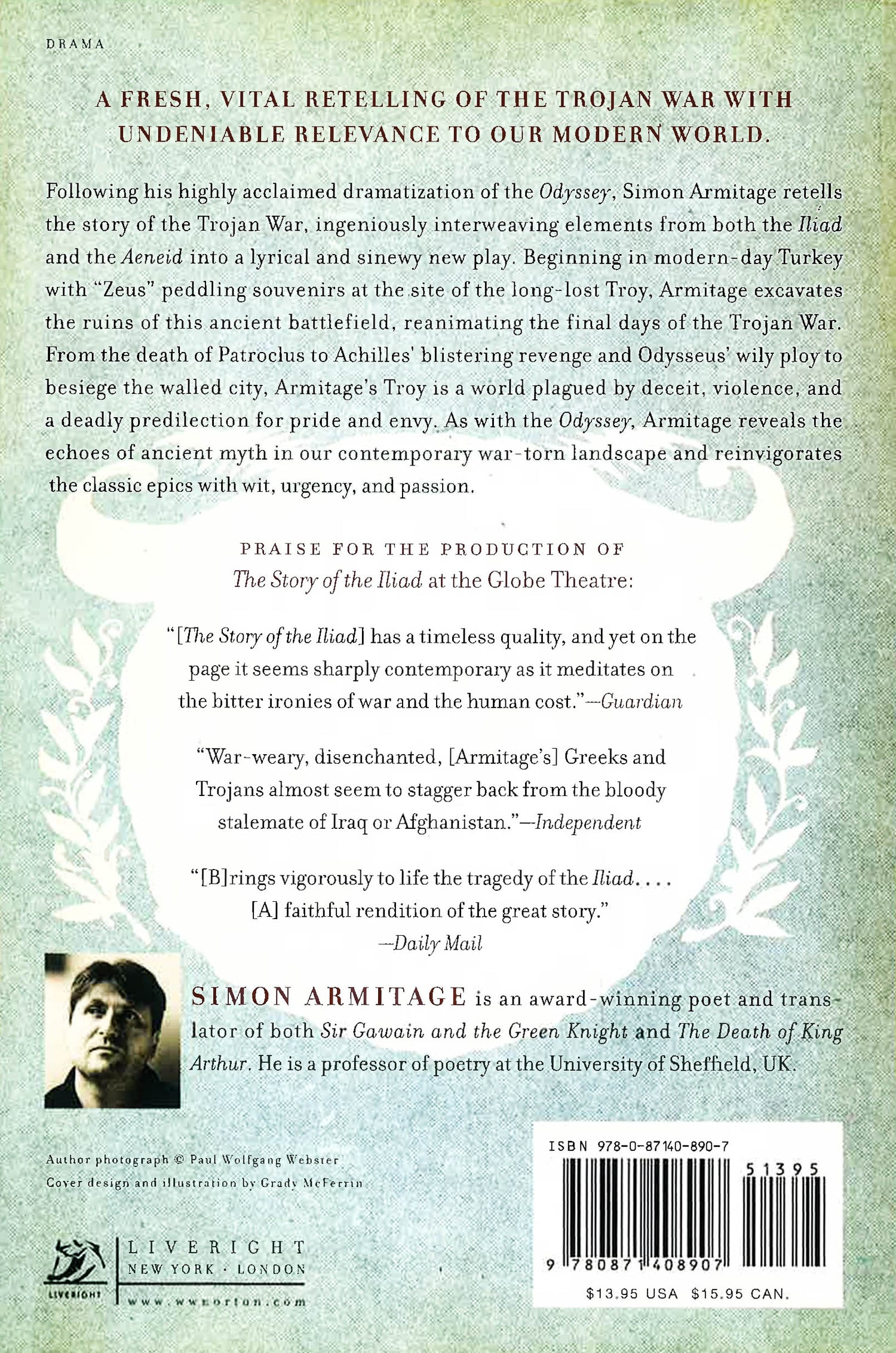 Following his highly acclaimed dramatization of the Odyssey, Simon Armitage here takes on the fate of Troy, bringing Homer's Iliad to life with refreshing imaginative vision. In the final days of the Trojan War, the Trojans and the Greeks are caught in a bitter stalemate. Exhausted and desperate after ten years of warfare, gods and men battle among themselves for the glory of recognition and a hand in victory. Cleverly intertwining the Iliad and the Aeneid, Armitage poetically narrates the tale of Troy to its dire end, evoking a world plagued by deceit, conflict, and a deadly predilection for pride and envy. As with the Odyssey, Armitage reveals the echoes of ancient myth in our contemporary war-torn landscape, and reinvigorates the classic epics with adventure, passion, and, surprisingly, Shakespearean wit.