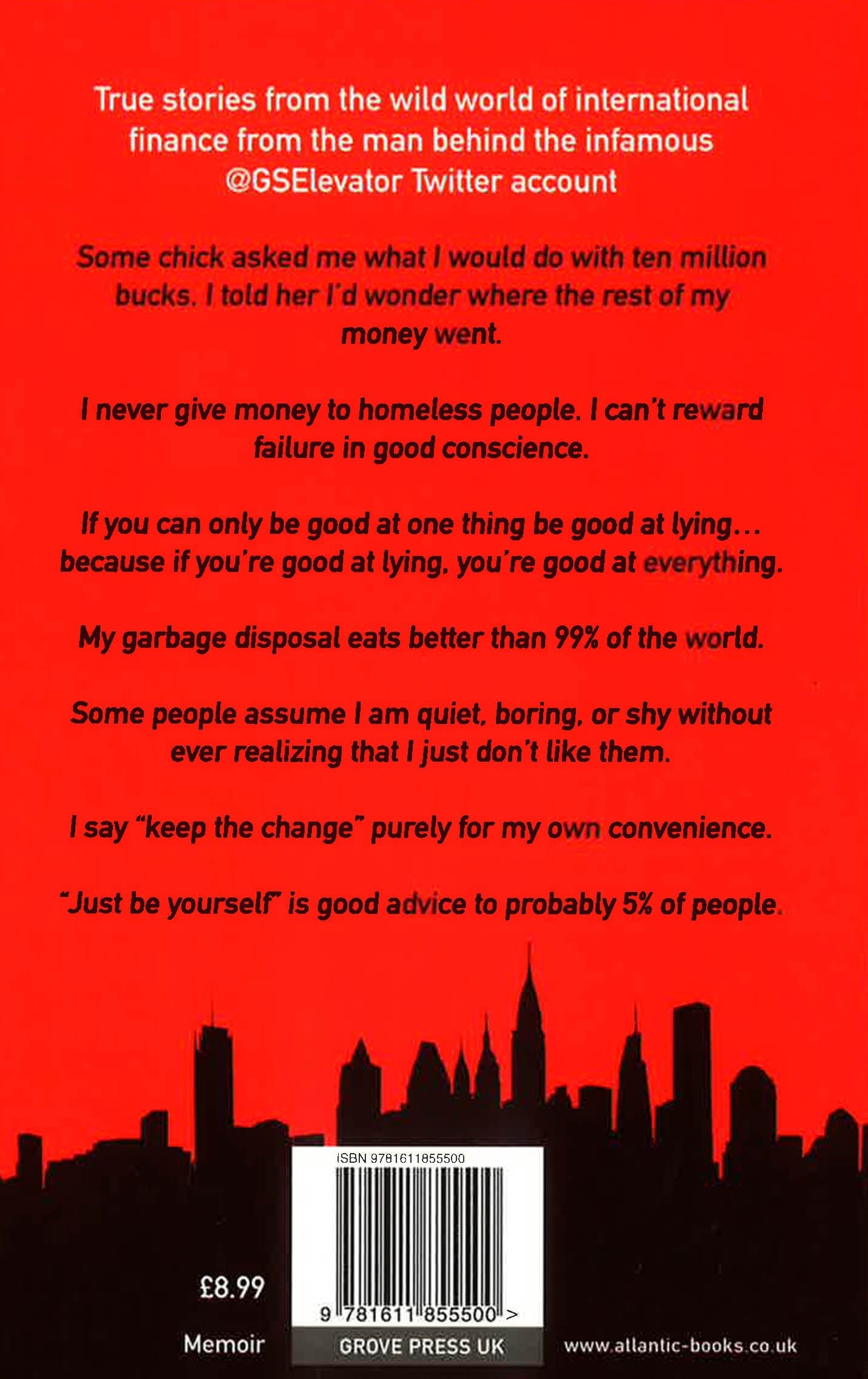 From the man behind the infamous @GSElevator Twitter account, true stories from the wild world of international finance. Over the past three years, the notorious @GSElevator Twitter feed has offered a hilarious, shamelessly voyeuristic look into the real world of international finance. Hundreds of thousands followed the account, Goldman Sachs launched an internal investigation, and when the true identity of the man behind it all was revealed, it created a national media sensation - but that's only part of the story. Where @GSElevator captured the essence of the banking elite with curated jokes and submissions overheard by readers, Straight to Hell adds John LeFevre's own story - an unapologetic and darkly funny account of a career as a globe-conquering investment banker spanning New York, London, and Hong Kong. Straight to Hell pulls back the curtain on a world that is both hated and envied, taking readers from the trading floors and roadshows to private planes and after-hours overindulgence. Full of shocking lawlessness, boyish antics, and win-at-all-costs schemes, this is the definitive take on the deviant, dysfunctional, and absolutely excessive world of finance.