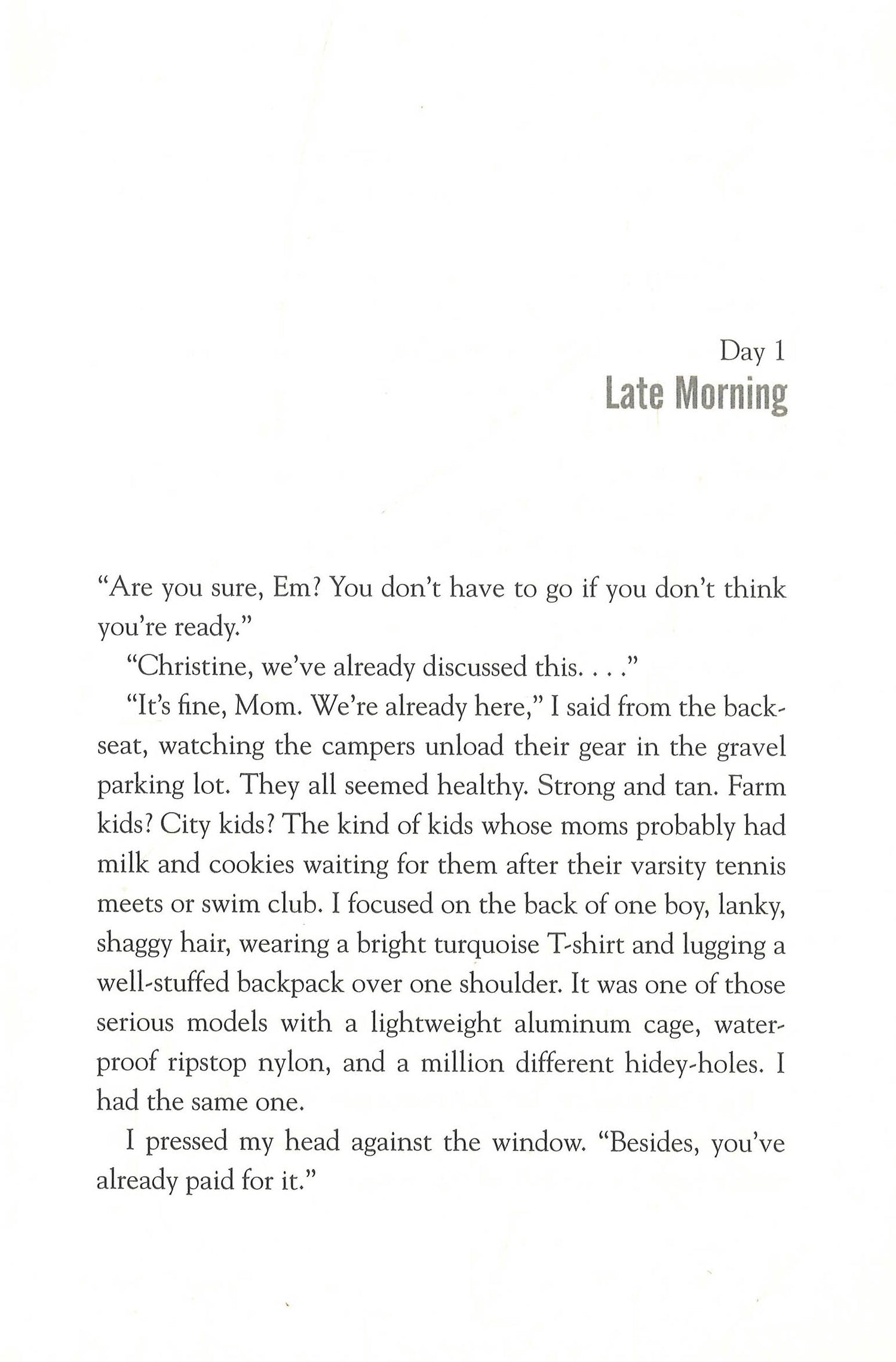 Plagued with guilt after surviving the car accident that took her sister's life, Emma ventures into the rugged and mysterious wilderness of the Boundary Waters in search of some much needed peace. But when a freak windstorm kills her guide, Emma and a handful of other campers are forced to fend for themselves. Lost, hungry, and exhausted, the small group must rely on their survival instincts as they travel through the forest towards Lake Superior.But the Boundary Waters is vast and unpredictable, and as the days drag on, it becomes clear that the group is no match for what Mother Nature has in store - and time is running out.As they continue to battle the elements, Emma realizes that nature isn't her only threat: there's one camper who will do whatever it takes to make it out of the Boundary Waters alive. Even if he's the only one . . .With ripped-from-the-headlines drama, this stirring story of heroism and survival will have you at the edge of your seat until the very last page.
