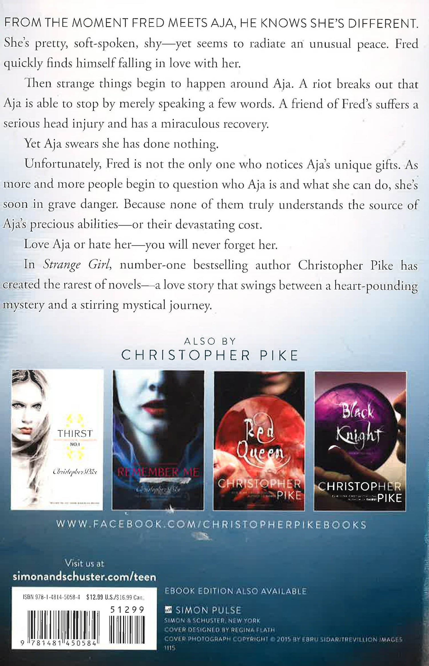 From #1 New York Times bestselling author Christopher Pike comes a brand-new fascinating and seductive new novel about a girl with a mysterious ability - but one that carries an unimaginable cost.From the moment Fred meets Aja, he knows she’s different. She’s pretty, soft-spoken, shy - yet seems to radiate an unusual peace. Fred quickly finds himself falling in love with her.Then strange things begin to happen around Aja. A riot breaks out that Aja is able to stop by merely speaking a few words. A friend of Fred’s suffers a serious head injury and has a miraculous recovery.Yet Aja swears she has done nothing.Unfortunately, Fred is not the only one who notices Aja’s unique gifts. As more and more people begin to question who Aja is and what she can do, she’s soon in grave danger. Because none of them truly understands the source of Aja’s precious abilities - or their devastating cost.Love Aja or hate her - you will never forget her.