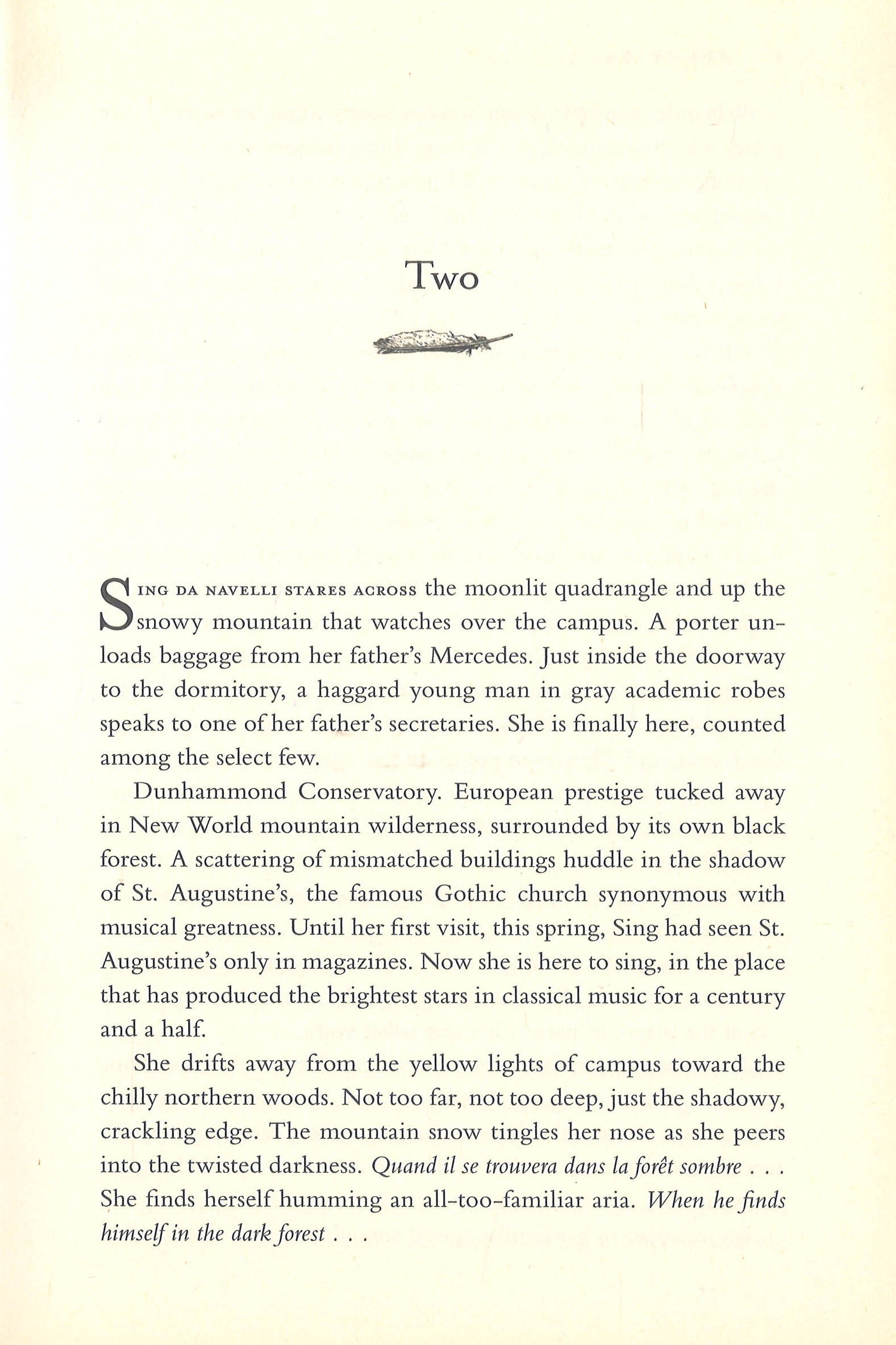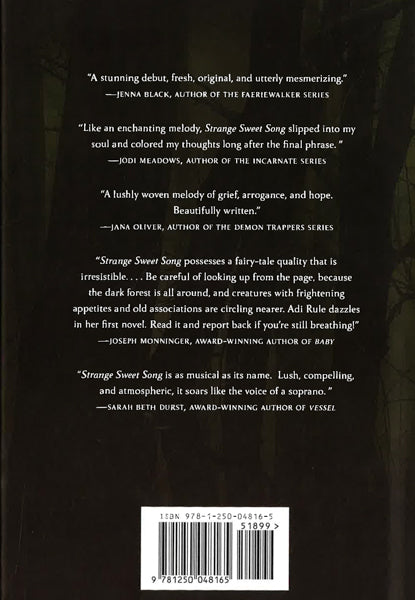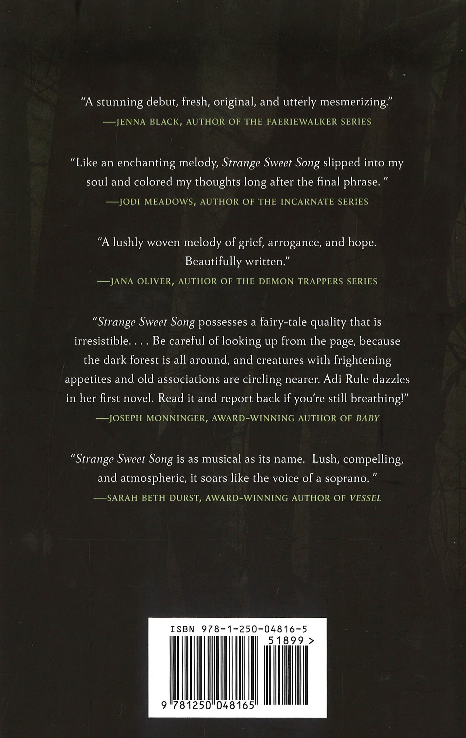 Outside Dunhammond Conservatory, there lies a dark forest. And in the forest, they say, lives a great beast called the Felix. But Sing da Navelli never put much faith in the rumors and myths surrounding the school; music flows in her blood, and she is there to sing for real. This prestigious academy will finally give her the chance to prove her worth not as the daughter of world-renowned musicians but as an artist and leading lady in her own right.Yet despite her best efforts, there seems to be something missing from her voice. Her doubts about her own talent are underscored by the fact that she is cast as the understudy in the school's production of her favorite opera, "Angelique." "Angelique" was written at Dunhammond, and the legend says that the composer was inspired by forest surrounding the school, a place steeped in history, magic, and danger. But was it all a figment of his imagination, or are the fantastic figures in the opera more than imaginary? Sing must work with the mysterious Apprentice Nathan Daysmoor as her vocal coach, who is both her harshest critic and staunchest advocate. But Nathan has secrets of his own, secrets that are entwined with the myths and legends surrounding Dunhammond, and the great creature they say lives there.Lyrical, gothic, and magical, "Strange Sweet Song "by Adi Rule will captivate and enchant readers."