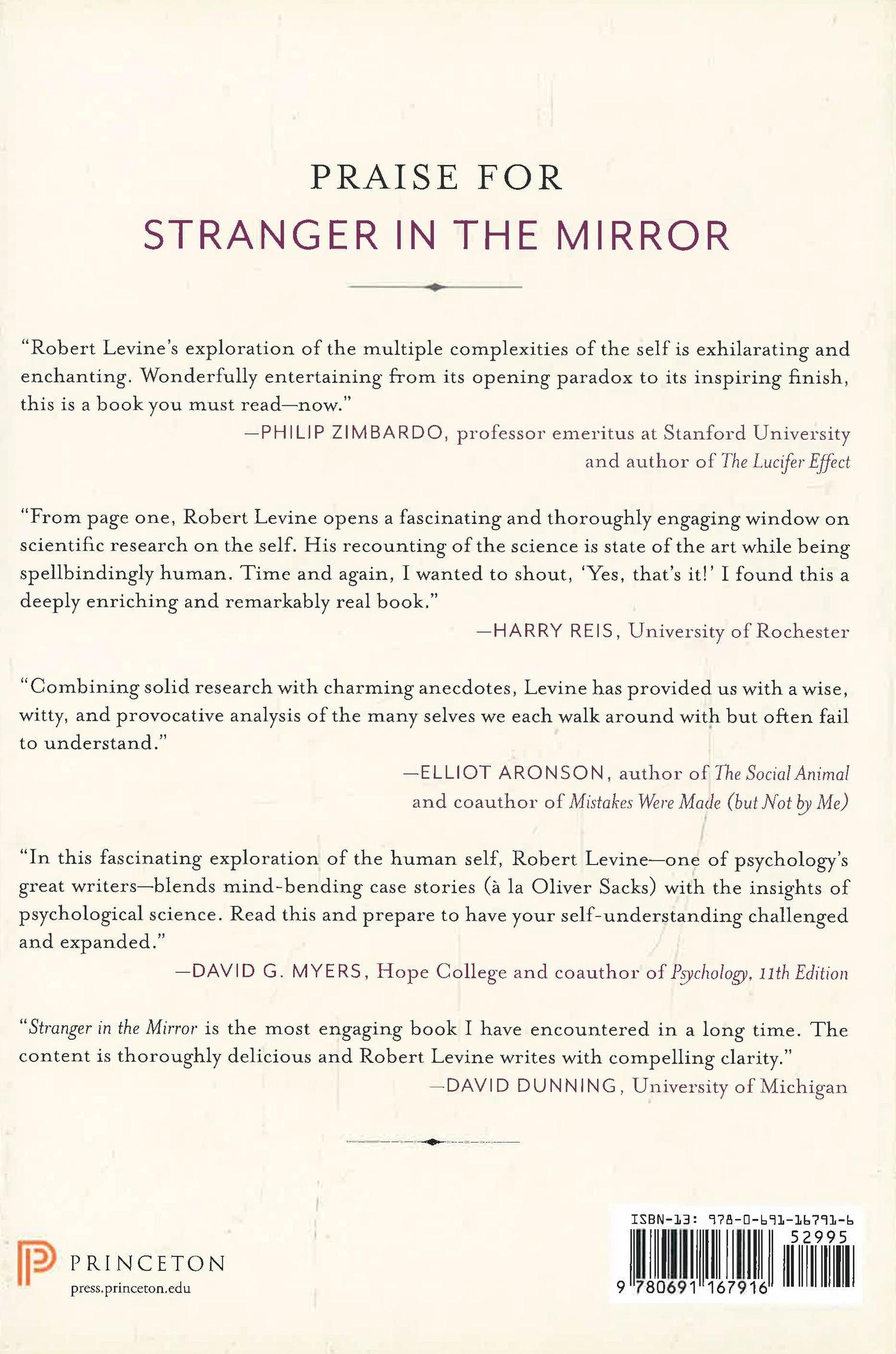In Stranger in the Mirror, Robert Levine offers a provocative and entertaining scientific exploration of the most personal and important of all landscapes: the physical and psychological entity we call our self. Who are we? Where is the boundary between us and everything else? Are we all multiple personalities? And how can we control who we become? Levine tackles these and other questions with a combination of surprising stories, case studies, and cutting-edge research-from psychology, biology, neuroscience, virtual reality, and many other fields. The result challenges cherished beliefs about the unity and stability of the self-but also suggests that we are more capable of change than we know. Transformation, Levine shows, is the human condition at virtually every level. Physically, our cells are unrecognizable from one moment to the next. Cognitively, our self-perceptions are equally changeable: A single glitch can make us lose track of a body part or our entire body-or to confuse our very self with that of another person. Psychologically, we switch back and forth like quicksilver between incongruent, sometimes adversarial subselves. Socially, we appear to be little more than an ever-changing troupe of actors. And, culturally, the boundaries of the self vary wildly around the world-from the confines of one's body to an entire village. The self, in short, is a fiction-vague, arbitrary, and utterly intangible. But it is also interminably fluid. And this, Levine argues, unleashes a world of potential. Fluidity creates malleability. And malleability creates possibilities. Engaging, informative, and ultimately liberating, Stranger in the Mirror will change forever how you think about your self-and what you might become.
