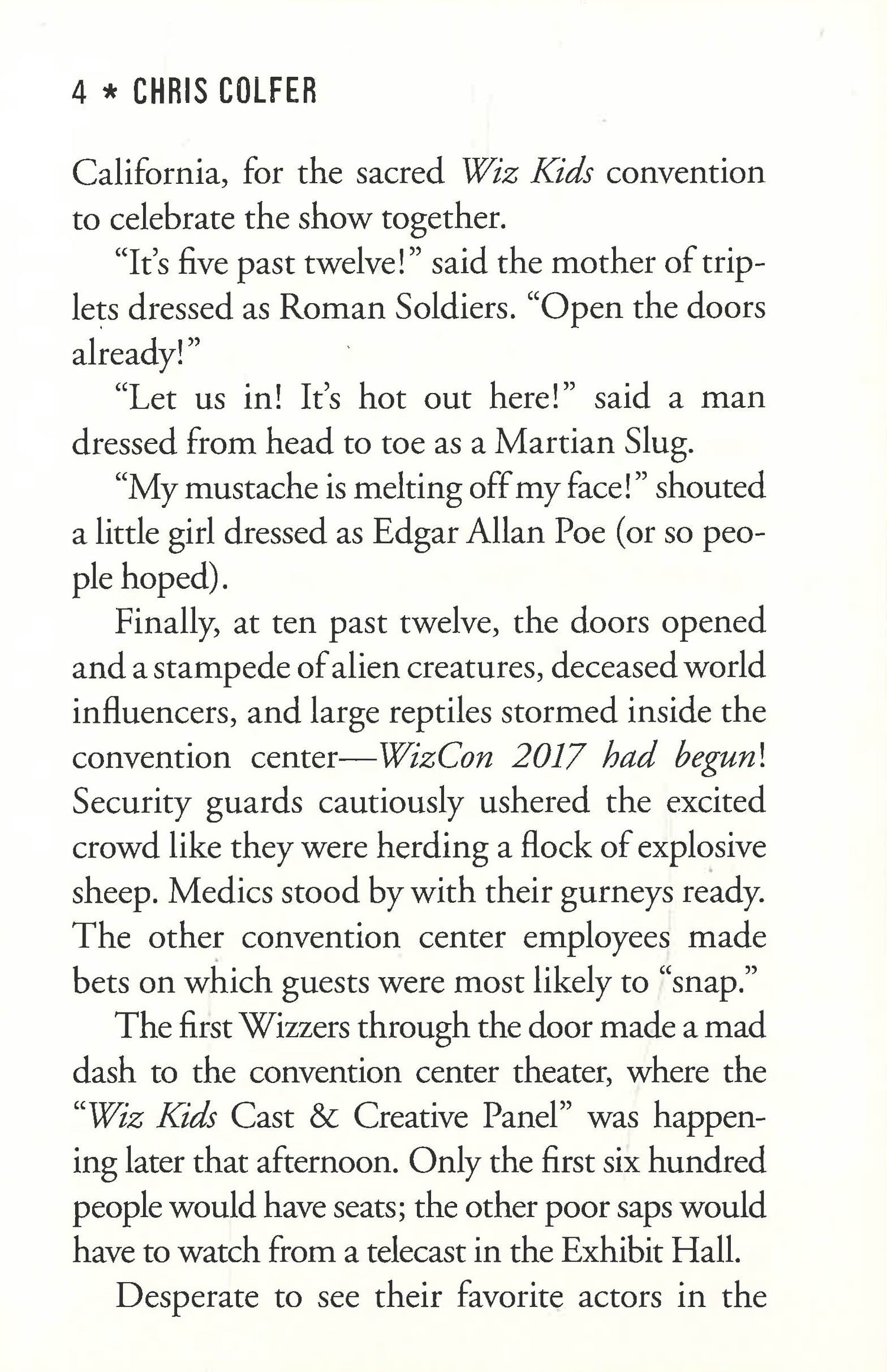 From #1 New York Times bestselling author Chris Colfer comes a funny, heartbreaking, unforgettable novel about friendship and fame. Cash Carter is the young, world famous lead actor of the hit television show Wiz Kids. When four fans jokingly invite him on a cross-country road trip, they are shocked that he actually takes them up on it. Chased by paparazzi and hounded by reporters, this unlikely crew takes off on a journey of a lifetime--but along the way they discover that the star they love has deep secrets he's been keeping. What they come to learn about the life of the mysterious person they thought they knew will teach them about the power of empathy and the unbreakable bond of true friendship. In this touching novel, #1 New York Times bestselling author Chris Colfer takes us on a journey full of laughter, tears, and life-changing memories.