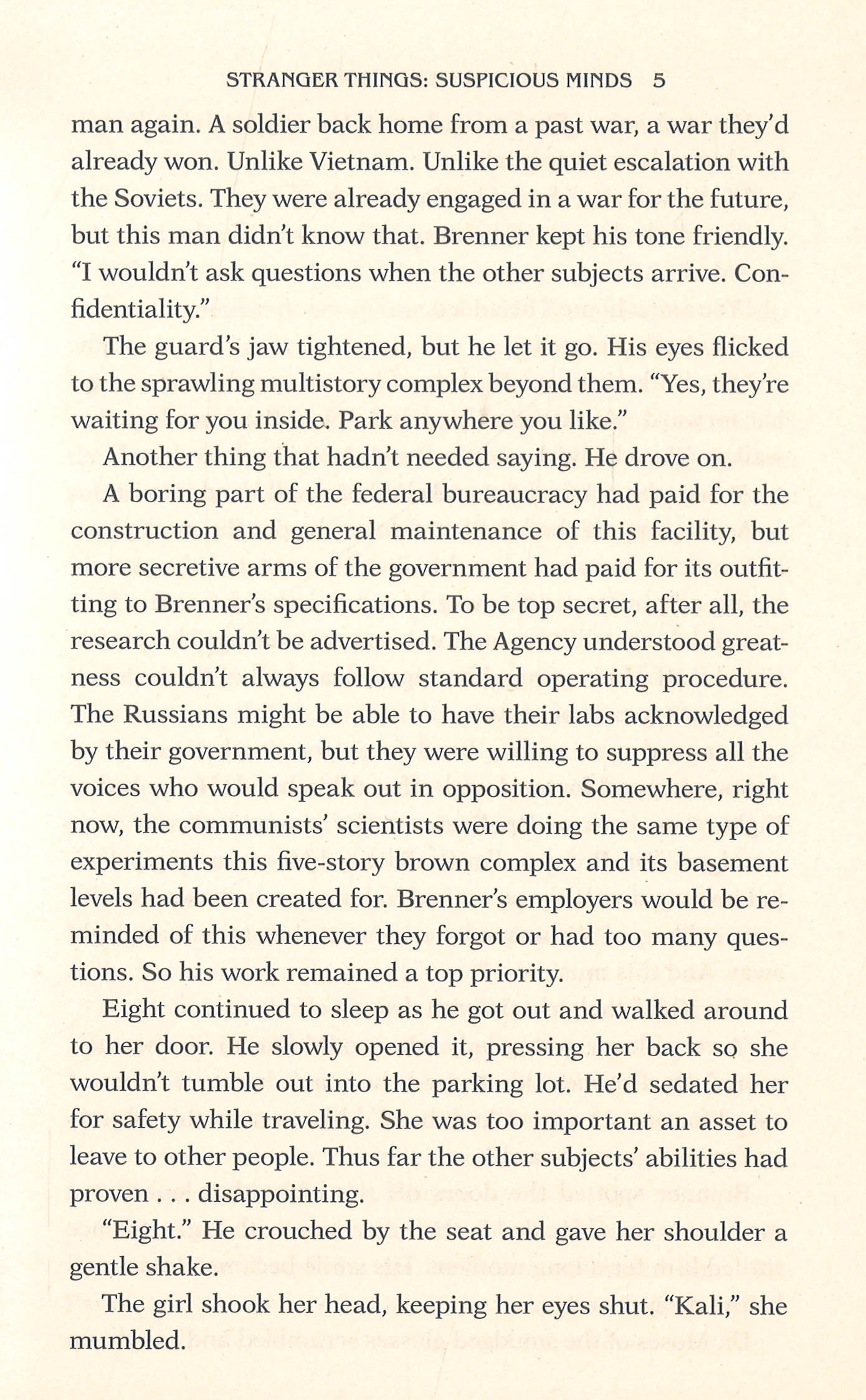 But behind the walls of Hawkins National Laboratory - and the piercing gaze of its director, Dr Martin Brenner - lurks a dark conspiracy. To face it, she'll need the help of her fellow test subjects, including a mysterious young girl with unexplainable powers. . .