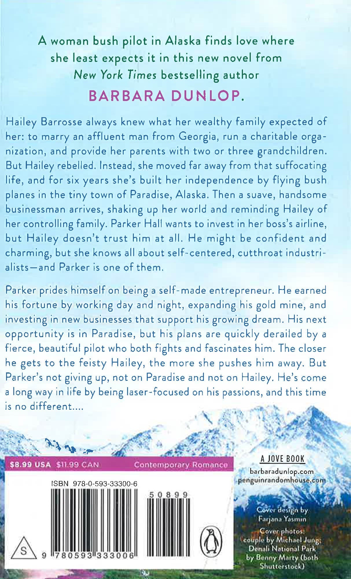 Hailey Barosse always knew what her wealthy family expected of her: marry an affluent Georgia man, run a charitable organization, and provide her parents with two or three grandchildren. But Hailey rebelled. Instead, she moved far away from that suffocating life, and for six years she’s built her independence by flying bush planes in the tiny town of Paradise, Alaska. Then a suave, handsome businessman arrives, shaking up her world and reminding her of her controlling family. Parker Hall wants to invest in her boss’s airline, but Hailey doesn’t trust him at all. He might be confident and charming, but she knows all about self-centered cutthroat industrialists—and Parker is one of them.