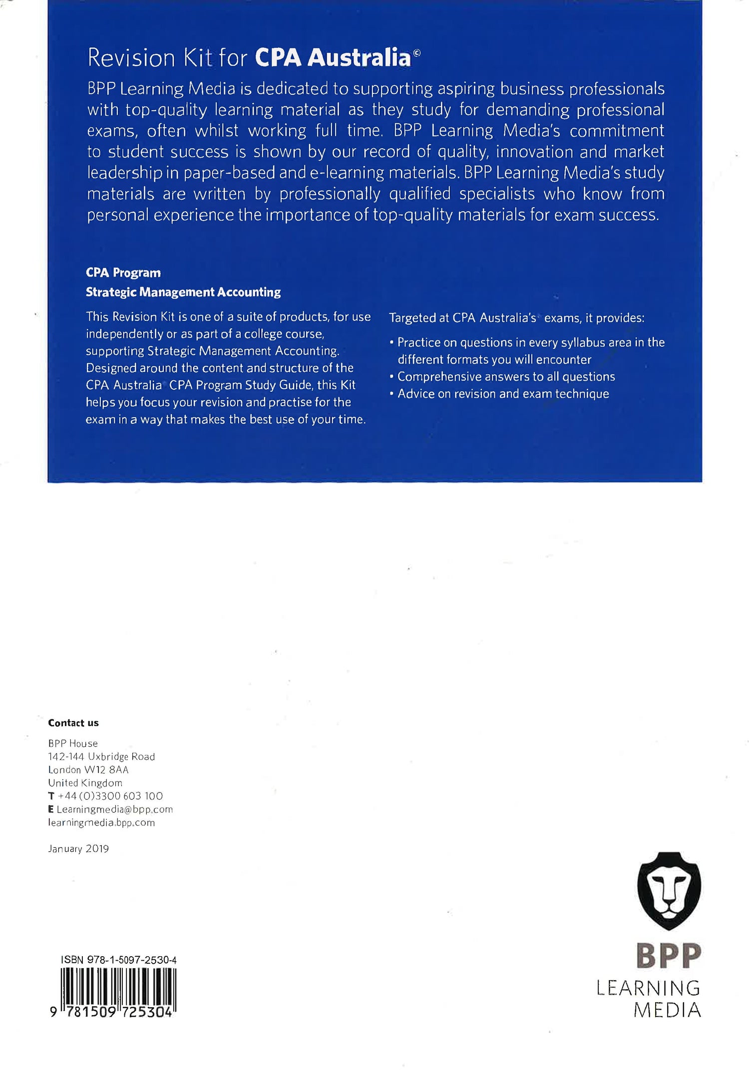 BPP Learning Media offers a range of learning materials for students working to complete the CPA Programme. Our products complement the structure and content of the CPA syllabus, helping to focus your revision and hone your exam technique.