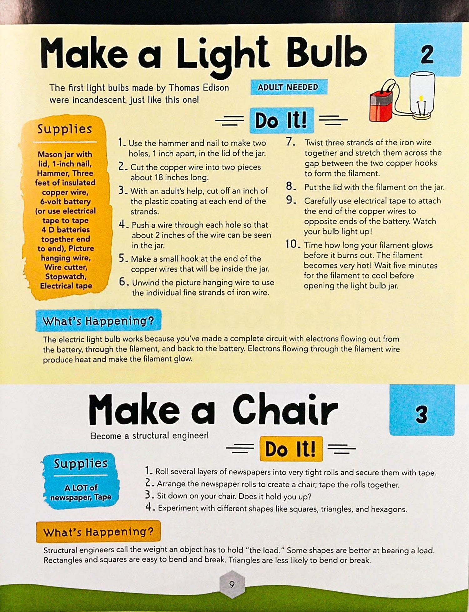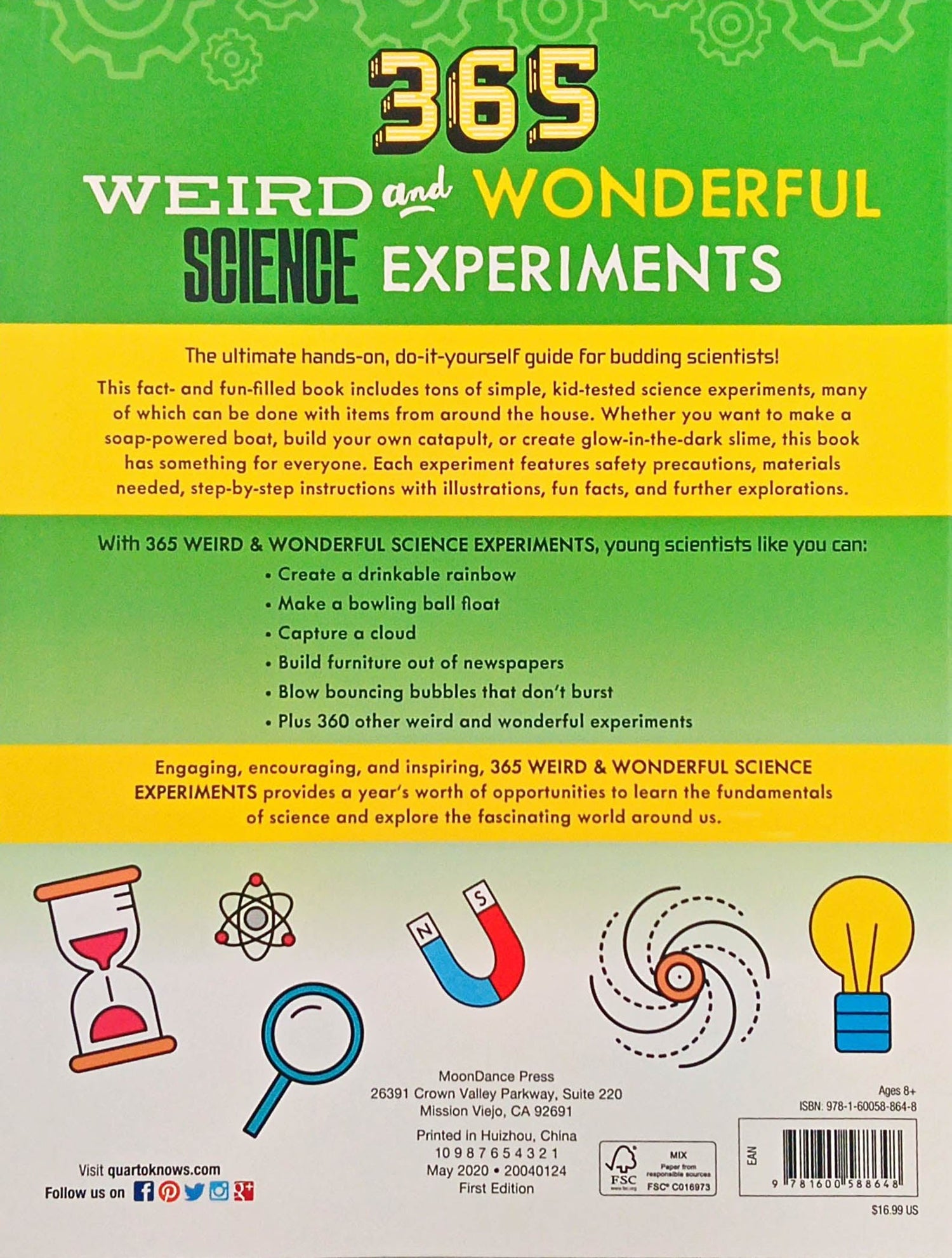 This fact- and fun-filled book includes tons of simple, kid-tested science experiments, many of which can be done with items from around the house. Whether you want to make a soap-powered boat, build your own catapult, or create glow-in-the-dark slime, this book has something for everyone. Each experiment features safety precautions, materials needed, step-by-step instructions with illustrations, fun facts, and further explorations.
