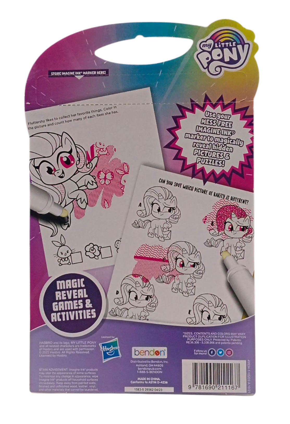 Reveal hidden pictures and puzzles on every page with Bendon’s Imagine Ink Mess Free Game Book! Your little artist will love finding favorite My Little Pony characters, and you'll love the magic of mess-free coloring! Includes 24-page Mess Free Game Book and 1 Mess-Free Imagine Ink marker and parents will love the mess-free games, puzzles, and activities featuring favorite characters in a portable size that's great for travel! Our special markers are invisible on most household surfaces! This is an official My Little Pony licensed product and is ideal for children ages 3 and up.