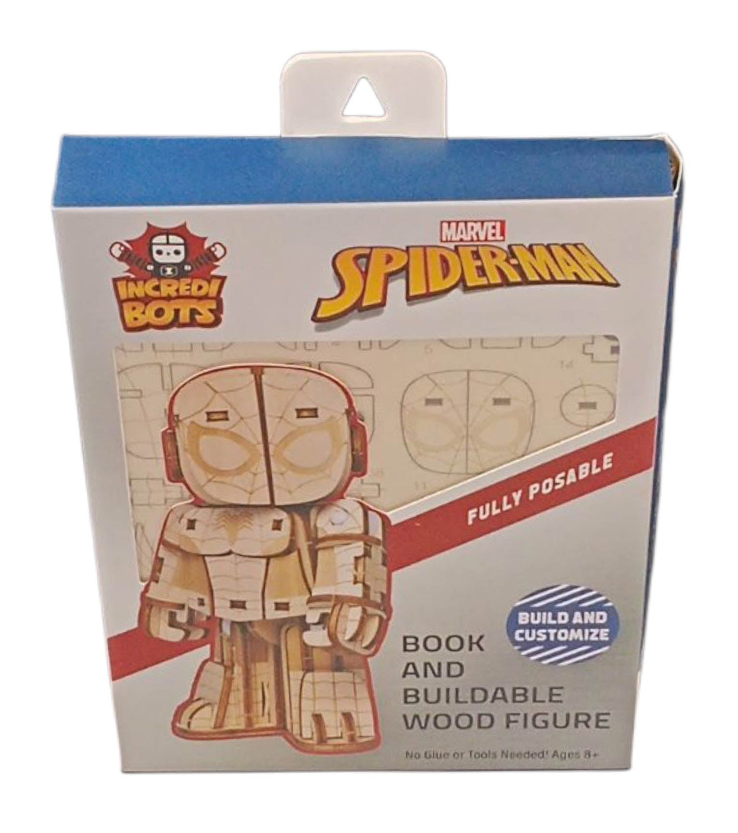 "Now Marvel fans can assemble their own team of Avengers beginning with this build-it-yourself Spider-Man model included in this IncrediBots kit! Made from natural wood, the model can be painted, colored, and customized to create a truly unique Spider-Man model. The included plastic joints and punch-out pieces are easy to assemble, snapping together to form a dynamic and movable 3D figure with five points of articulation. The sixteen-page softcover book is packed with humorous tongue-in-cheek snippets of Peter Parker in everyday situations as well as craft ideas for ultimate customization. Includes: - Laser-cut, FSCĀ®-certified wood sheet with easy-to-assemble pieces - Step-by-step instructions - Coloring and crafting ideas - A Spider-Man book Skill Level: Intermediate"