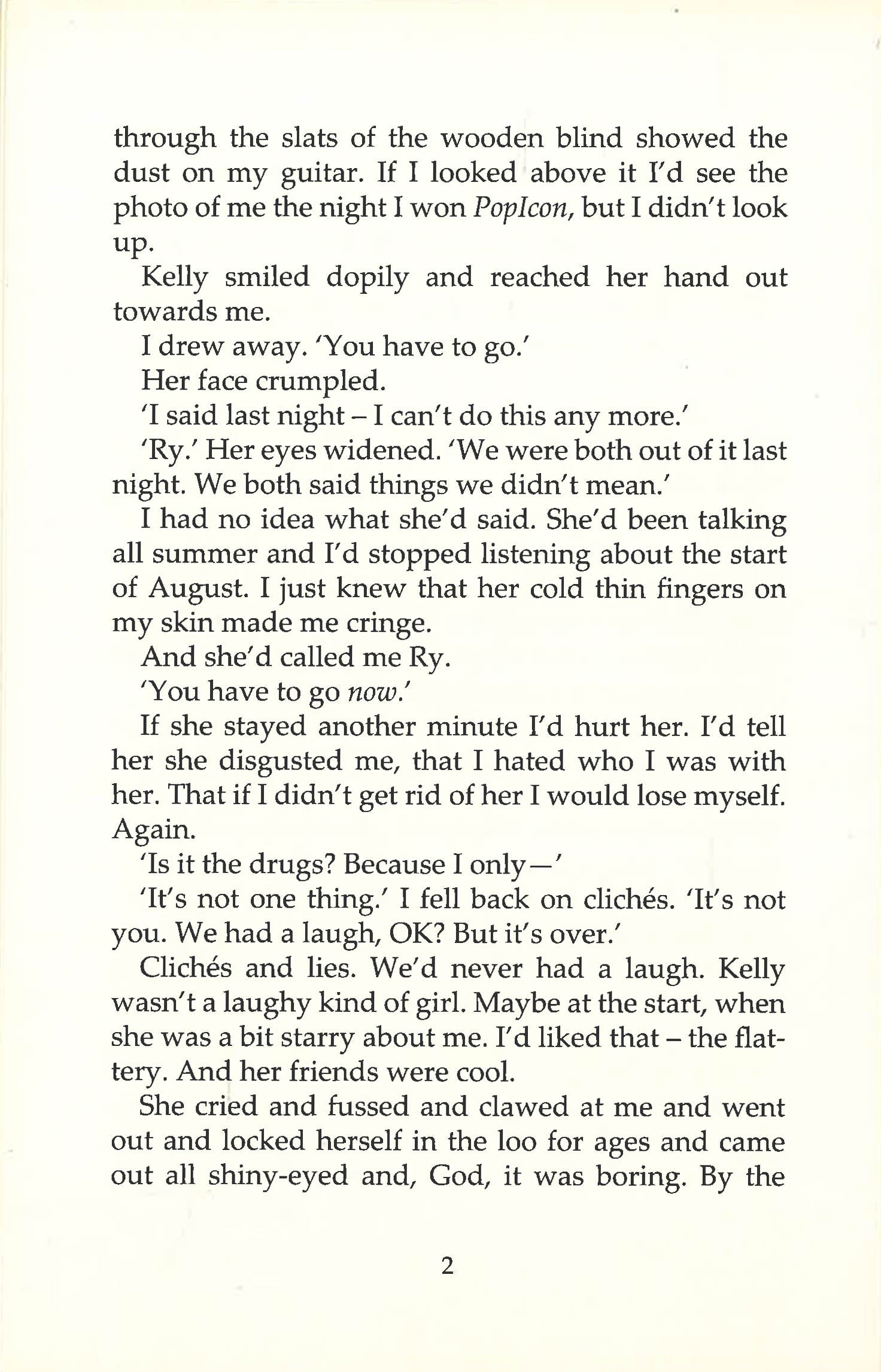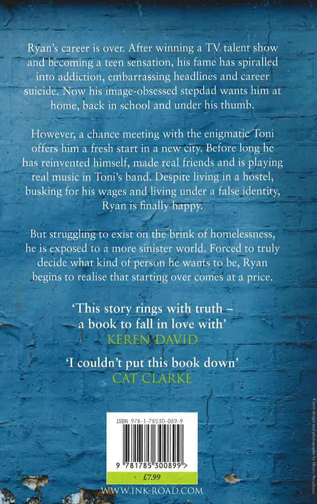 When life goes off-key, change your tune. RyLee's career is over. After winning a national TV talent show and becoming a teen pop sensation, his fame and success has quickly been followed by addiction, media scrutiny, and career suicide. After a brief spell in rehab, 18-year-old Ryan has some rethinking to do. His stepdad - music promoter and self-appointed creator of 'RyLee' - wants him at home and in school, and under his thumb. But after an argument descends into violence, Ryan decides to run away from his old life, his failed career, and his dysfunctional family. When he meets the stunningly witty but distinctly average guitar-player Toni almost directly outside his front door, the opportunity to start afresh seems too good to pass up. Before long, he has arrived in a new city, joined Toni's amazingly talented band, and reinvented himself under the name 'Cal'. For the first time in his life Ryan has friends around him, he's playing the music he's always wanted to play, and - despite living in a hostel, busking for his wages, and living under a false identity - he's finally happy. But just when Ryan feels like he has truly started over, his past begins to catch up with him.