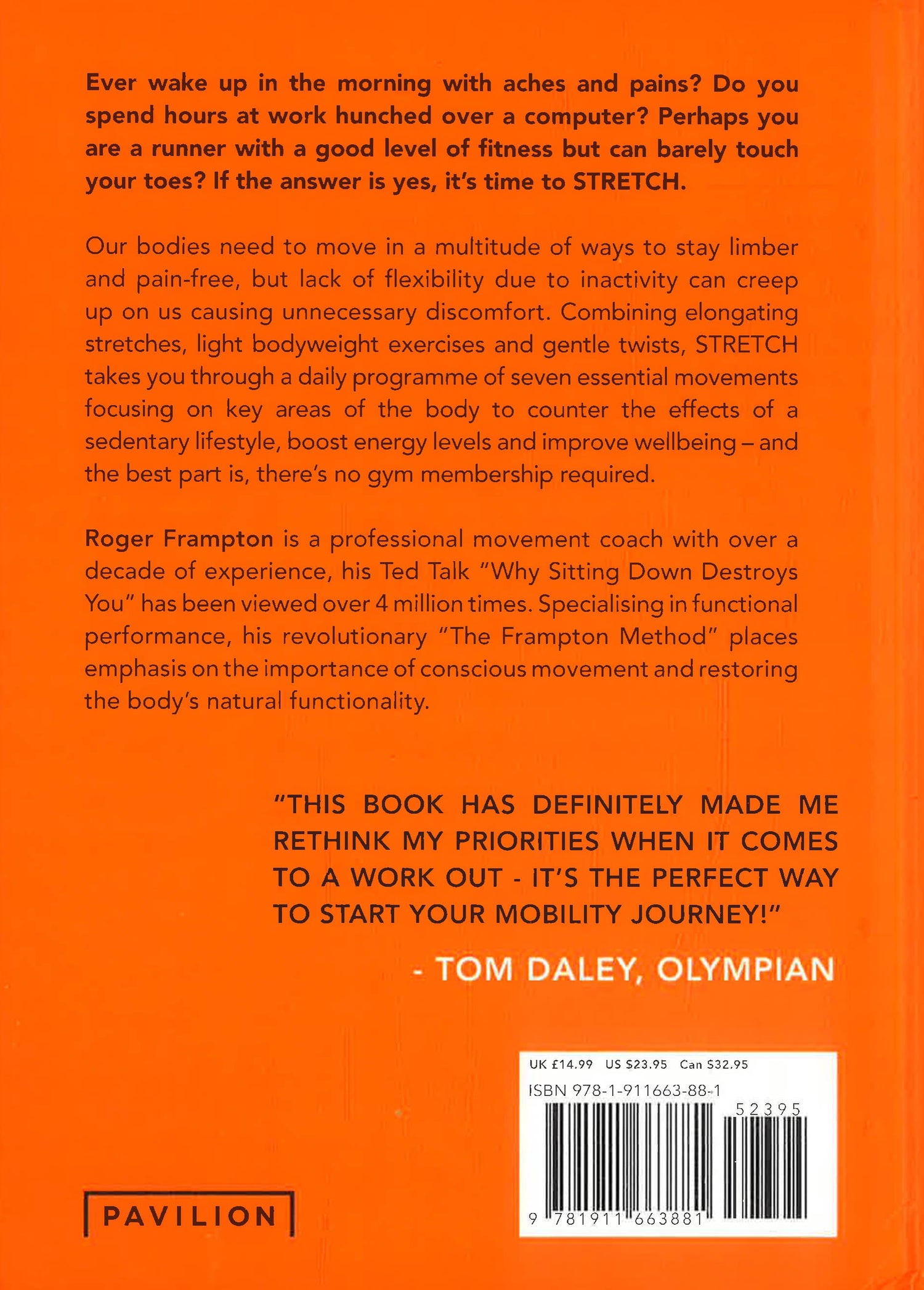 In STRETCH, professional movement coach Roger Frampton is here to tell you that flexibility and mobility should really be likened to brushing your teeth daily, on waking up and before you sleep. His TED Talk “Why Sitting Down Destroys You” has been viewed over 3 million times and his revolutionary approach to functional fitness emphasises the importance of conscious movement. Combining light bodyweight exercises, gentle twists and elongating stretches, STRETCH is a daily programme of seven essential movements (with three variations of each) to help combat the key areas of the body that have lost functionality, improve overall wellbeing and fight the negative effects of a sedentary lifestyle. All without a gym membership.