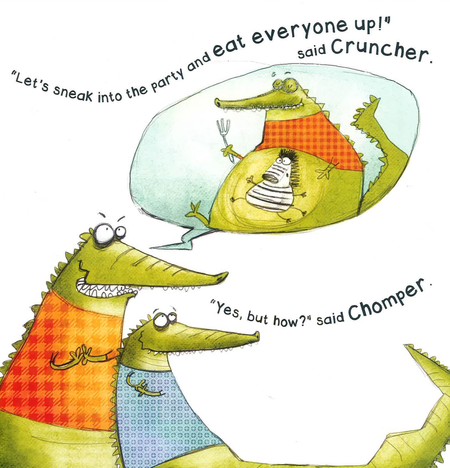 It’s Zebra’s birthday but the crocs are not invited! Chomper, Snapper and Cruncher want to eat everyone up, but without an invitation, they must come up with a plan to get into that party. What they don’t plan for, is just how much fun they will have! A simple but funny story with three loveable rogues! The illustrations by Susan Batori are sure to make you smile.