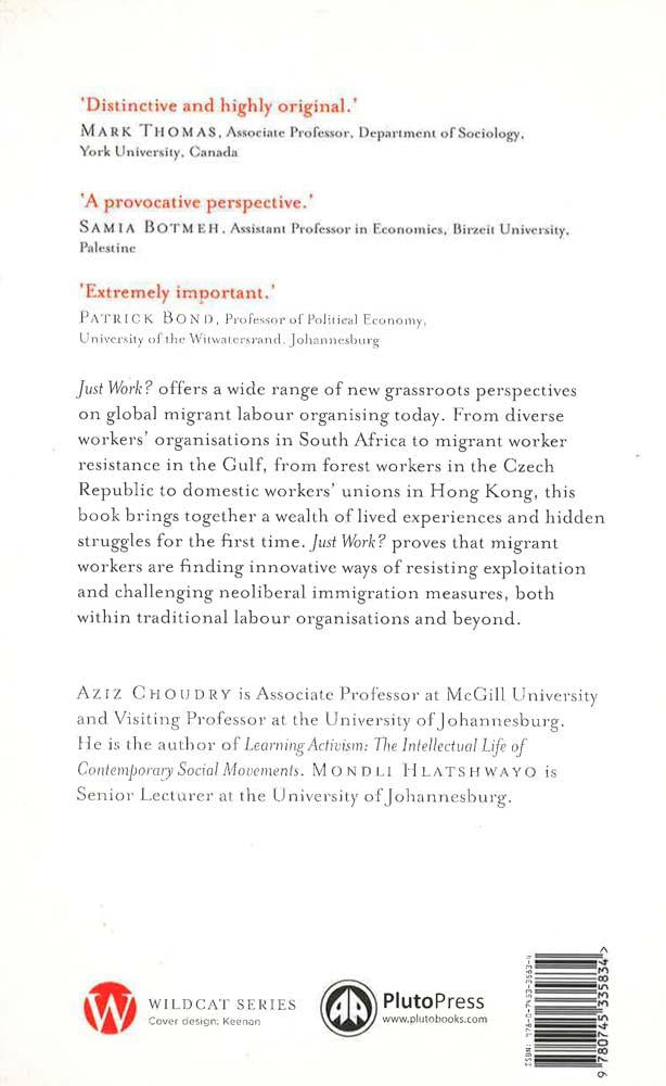 Highlighting the changing nature of frontline struggles against exploitation, Just Work? shows that migrant workers are finding new and innovative ways of resisting neoliberal immigration measures as they are forced to fight against the precarious nature of jobs from both within and outside of traditional forms of labour organisations. With contributions from scholars and activists from around the world engaged in this resistance, this will be an accessible collection based on grassroots experiences, placed in a political economy framework.