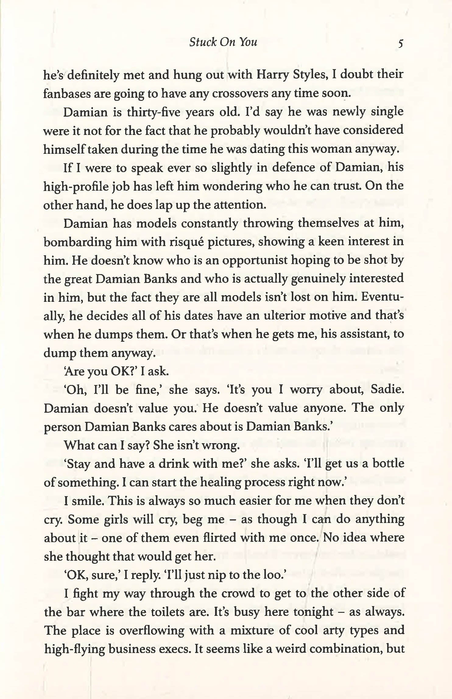 Sadie doesn't have time for finding love. She's too busy as PA for famous artist Damian Banks. When she's not arranging exhibitions, she's organising his dry cleaning or dumping his never-ending stream of girlfriends.