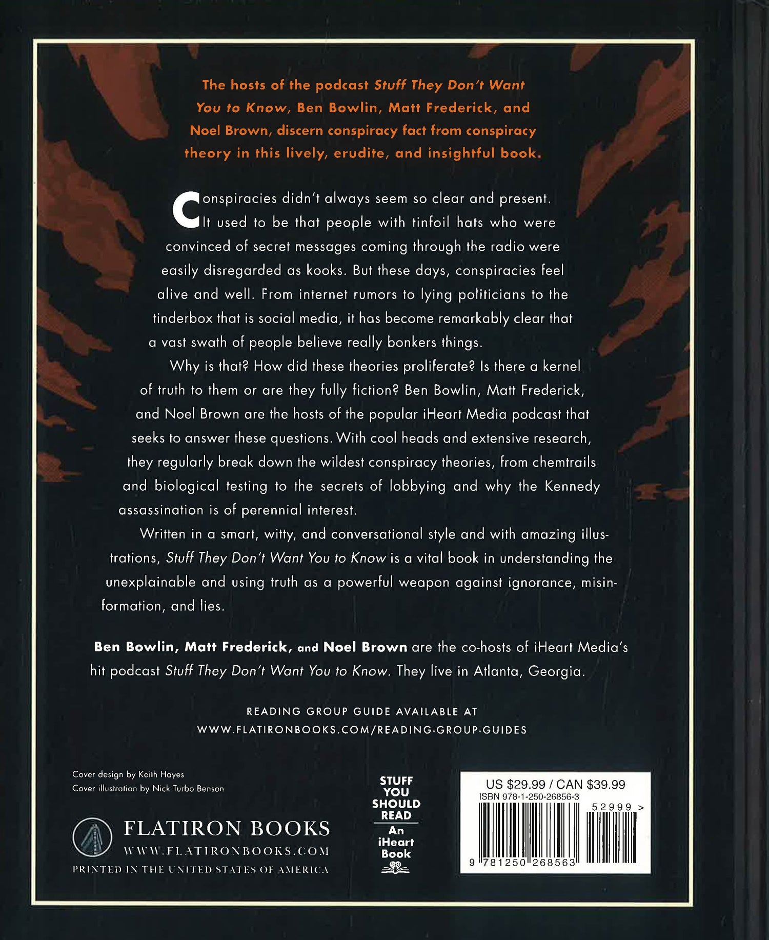 The co-hosts of the hit podcast Stuff They Don't Want You to Know, Ben Bowlin, Matthew Frederick, & Noel Brown, discern conspiracy fact from fiction in this sharp, humorous, compulsively readable, and gorgeously illustrated book.