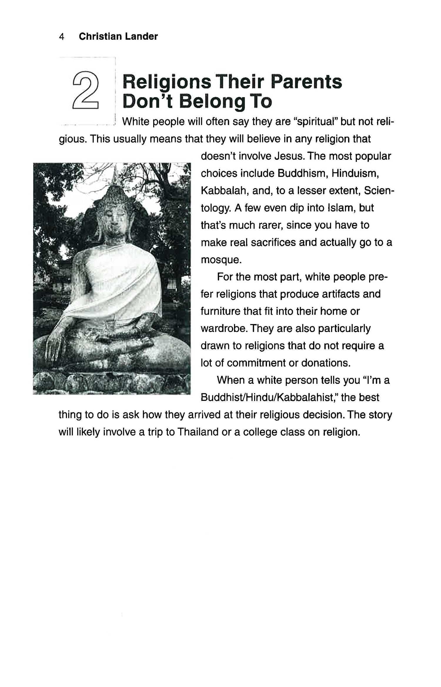 -Salon.com "A handy reference guide with which you can check just how white you are. Hint: If you like only documentaries and think your child is gifted, you glow in the dark, buddy."