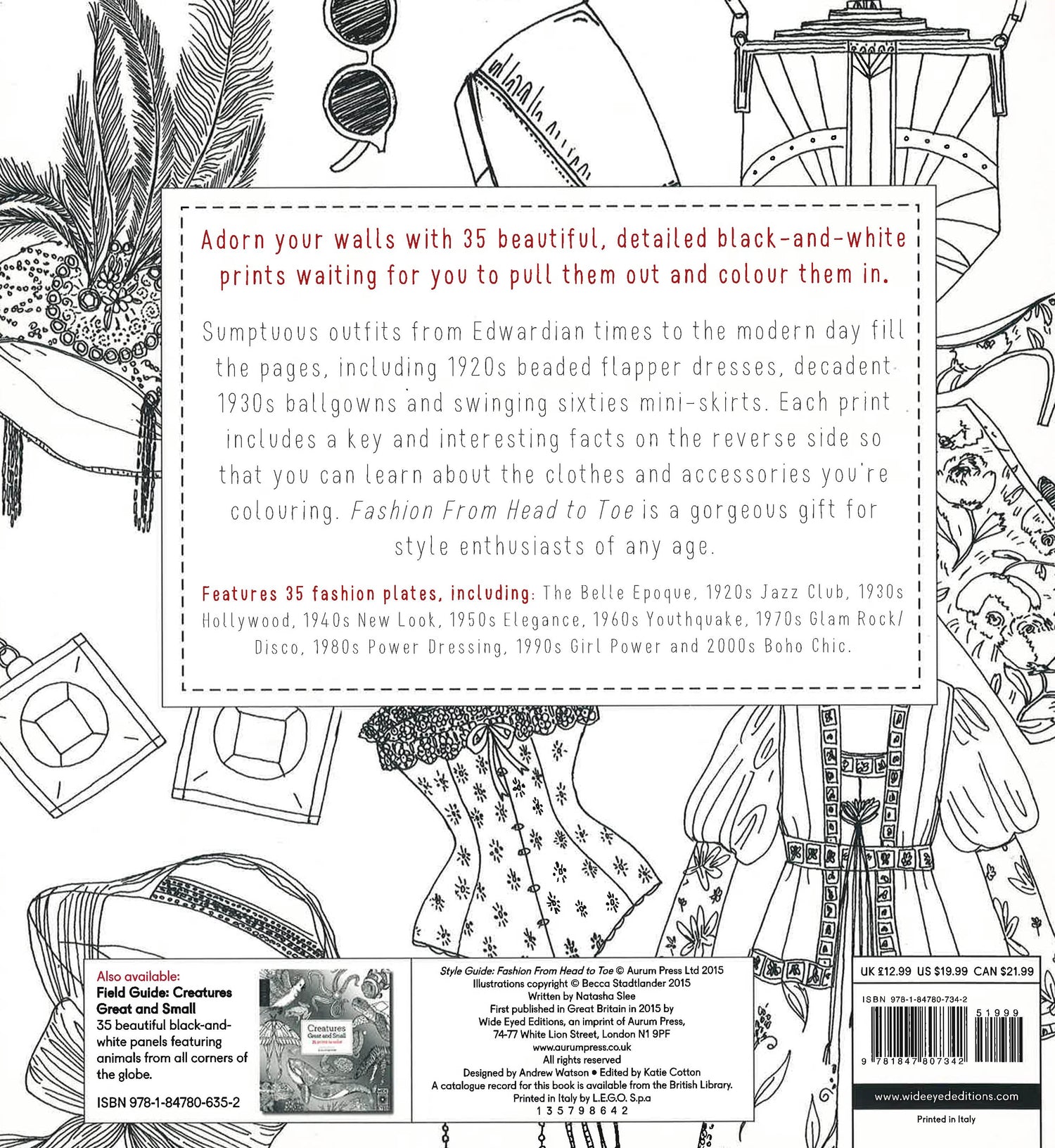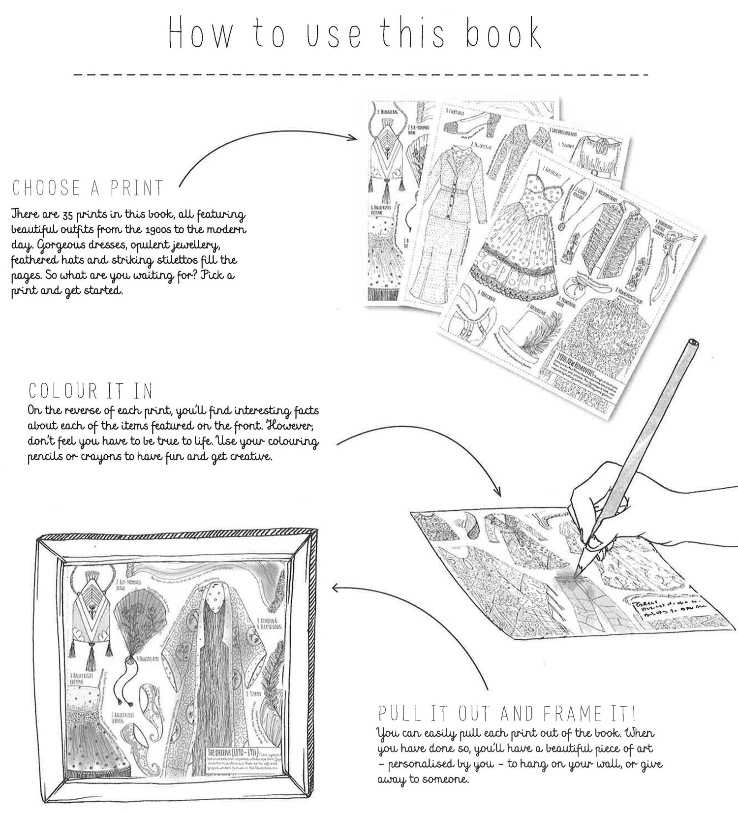From decadent ballgowns to swinging sixties mini dresses to 80s power suits, this stunning illustrated guide is full of incredible clothes from 1900 to the modern-day. Beautifully presented as a book of high-quality decorative black-and-white prints, there is information on each of these amazing vintage outfits on the reverse of each print. Pull out each of the 35 prints and colour them in as you wish, either by following the colouring tips on the back or by letting your imagination run wild. Then hang them up on your wall or give them away as presents. With gorgeous, detailed artwork and an eyecatching 100% gold foil cover, this is a colouring book that will stand out from the crowd. The perfect gift for any budding young fashion designers or style queens!