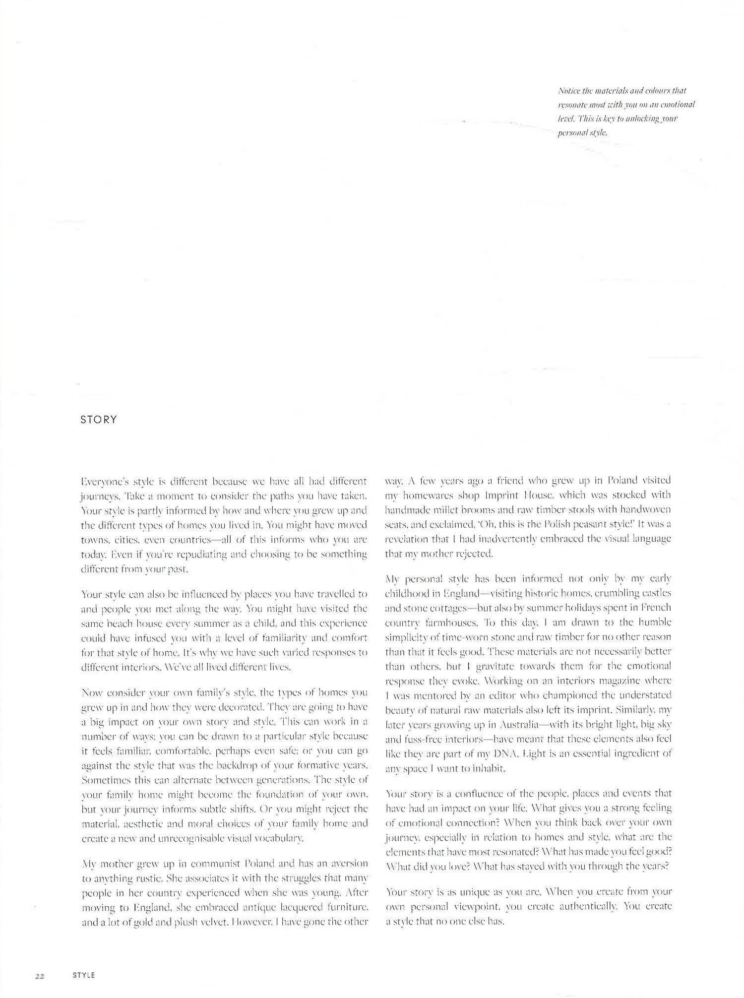 Style: The Art of Creating a Beautiful Home is a timeless interiors book that shows you how to transform your living spaces using what you own and love. While designing can be a big investment, styling allows you to elevate your spaces with what you've already got. This book is at once beautiful and practical, demystifying the creative process of styling so that you can create a beautiful home with confidence. Based on more than a decade of industry experience and teaching, this book will show you how to connect with your own personal style and enjoy inspiring, welcoming and authentic interiors. Styling is both an art and a science – and you can learn both. The inviting chapters explore identifying your style; design principles; transforming spaces; visual storytelling; and nurturing your craft. As well, author and renowned interior stylist Natalie Walton steps through significant rooms in the house to provide expert insider insights on how you can create magical styling moments in your home. The book is beautifully shot by photographer Chris Warnes, who has collaborated with Natalie on her previous books, This is Home: The Art of Simple Living and Still: The Slow Home.