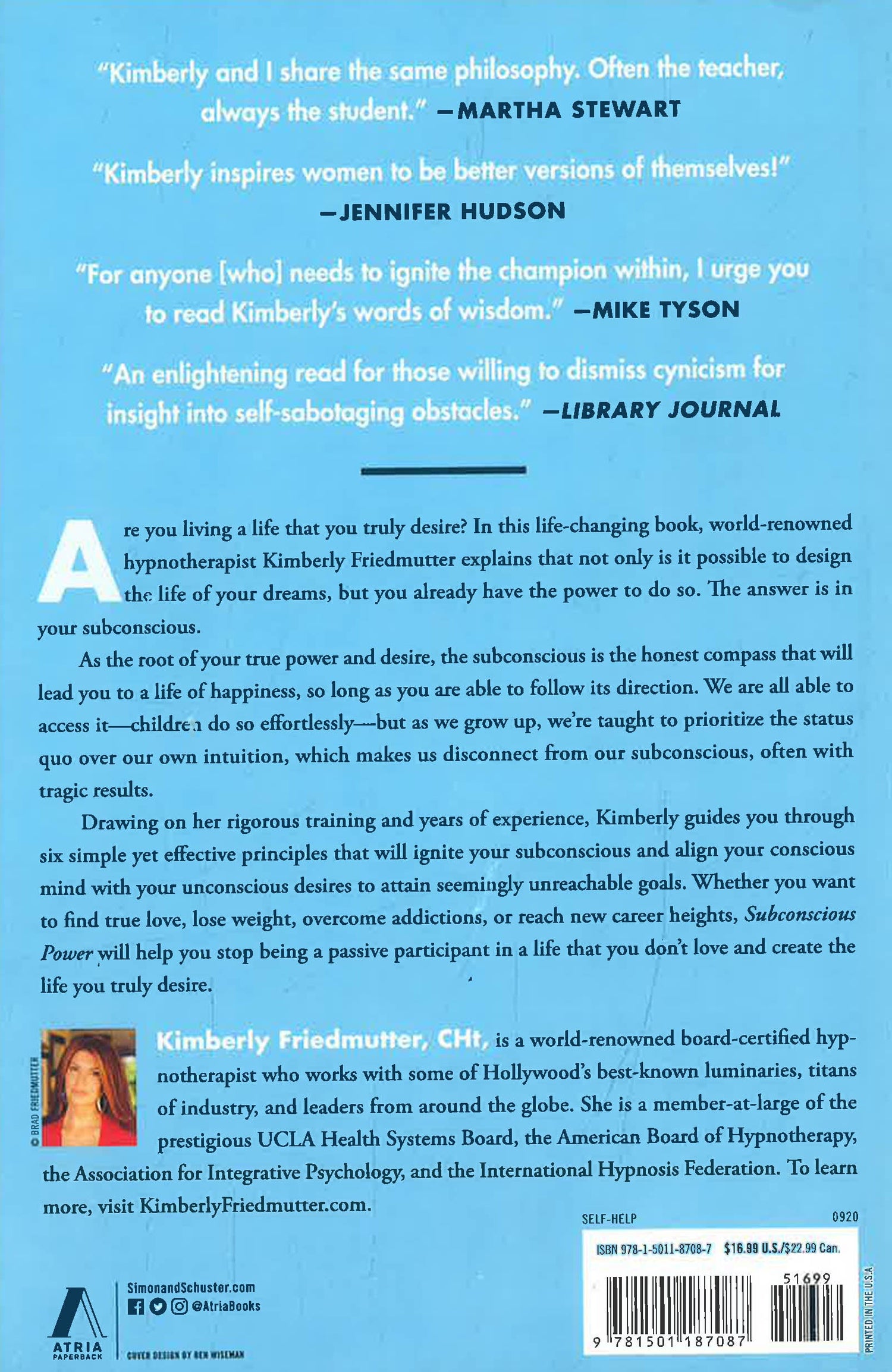 In Subconscious Power, Kimberly guides you through six principles that bring your conscious mind in line with your subconscious desires. She shares practical, three-minute exercises that will help you transform your relationships, find true love, lose weight after years of struggling with the scale, overcome addictions, and achieve new career successes and heights. Featuring inspiring success stories and the practical tools you need to make meaningful change, Subconscious Power gives “you a pathway to achieve your goals and dreams in an effective and easily understandable manner. This book will improve your life in ways you never thought of” (David Zelon, producer of Soul Surfer).