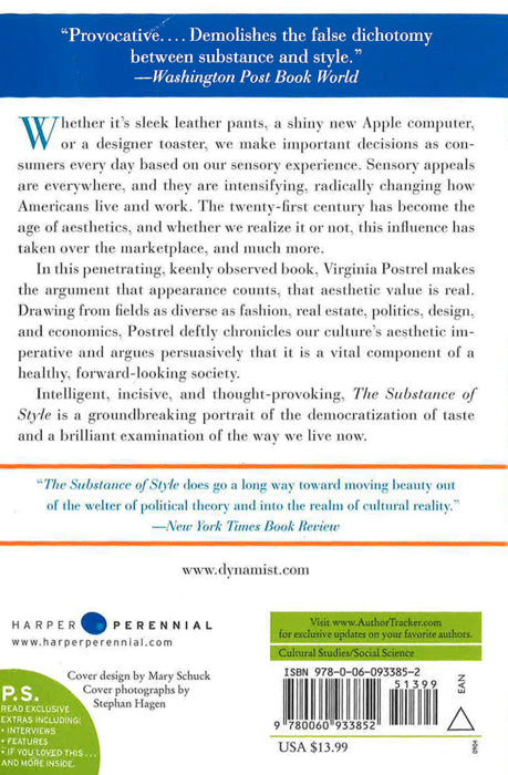 In this penetrating, keenly observed book, Virginia Postrel makes the argument that appearance counts, that aesthetic value is real. Drawing from fields as diverse as fashion, real estate, politics, design, and economics, Postrel deftly chronicles our culture's aesthetic imperative and argues persuasively that it is a vital component of a healthy, forward-looking society.