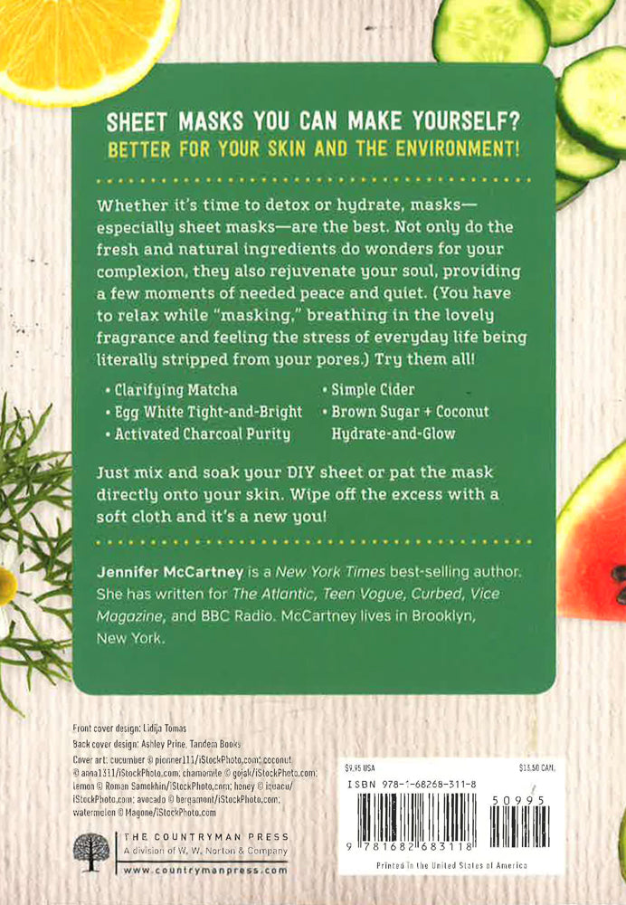 Make your own Insta-face mask, whether or not you post a pic of yourself wearing one. Masks- especially one- use sheet masks- are the latest craze to sweep the beauty industry and a fun addition to any skin- care routine. But the costs add up and the ingredient lists are often riddled with parabens and preservatives. (Think of the environment, too, with all that packaging!) Here are 101 recipes that are easy to make and often use only a few ingredients. There's a remedy for any skin woe- from dull, dry skin to large pores. Recipes include: Egg White Tight and Bright Sheet MaskCoconut Glam Glow Sheet MaskClarifying Matcha Sheet MaskActivated Charcoal Deep Cleansing Sheet Mask With instructions for re-usable, green-friendly, DIY cloth face sheets.