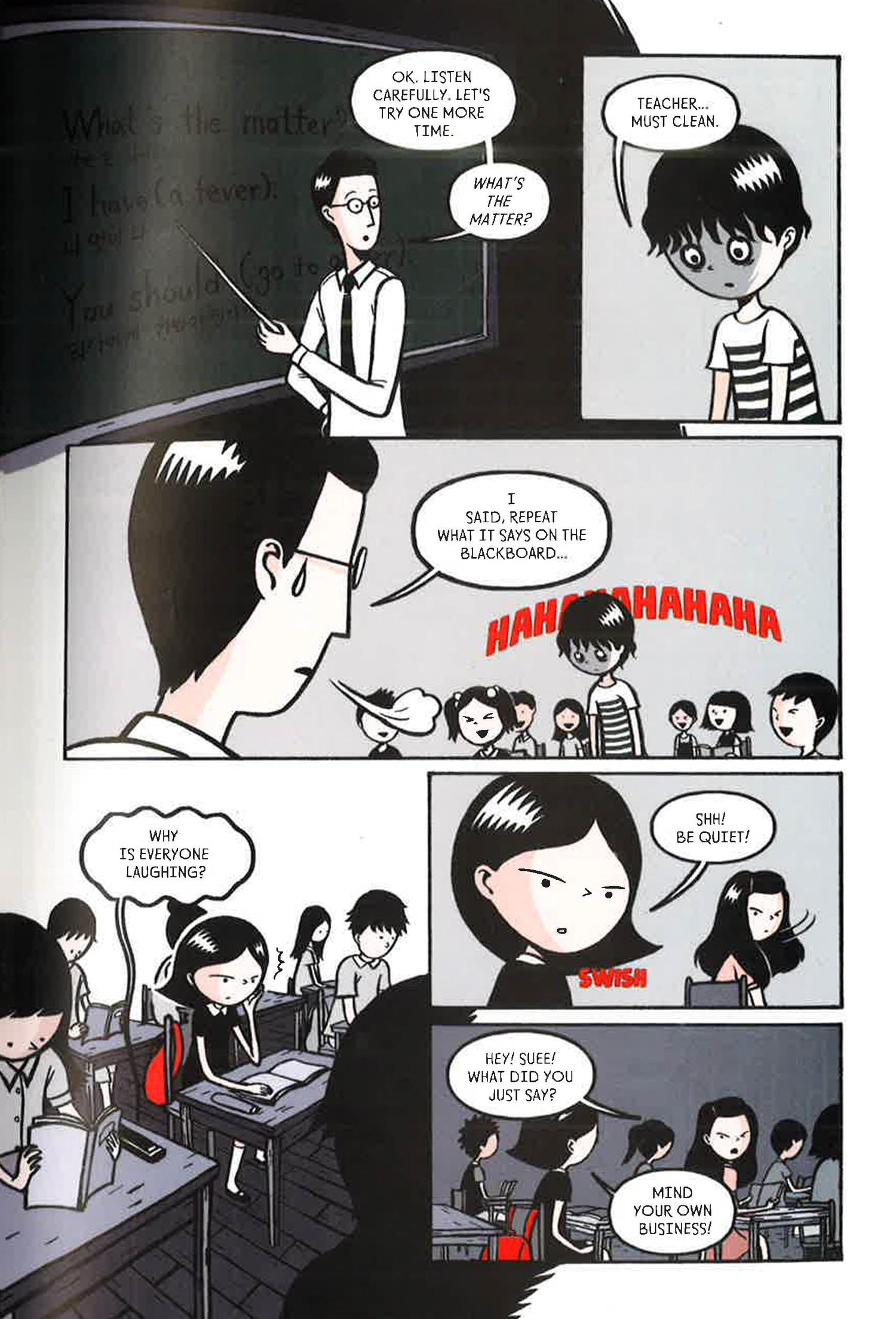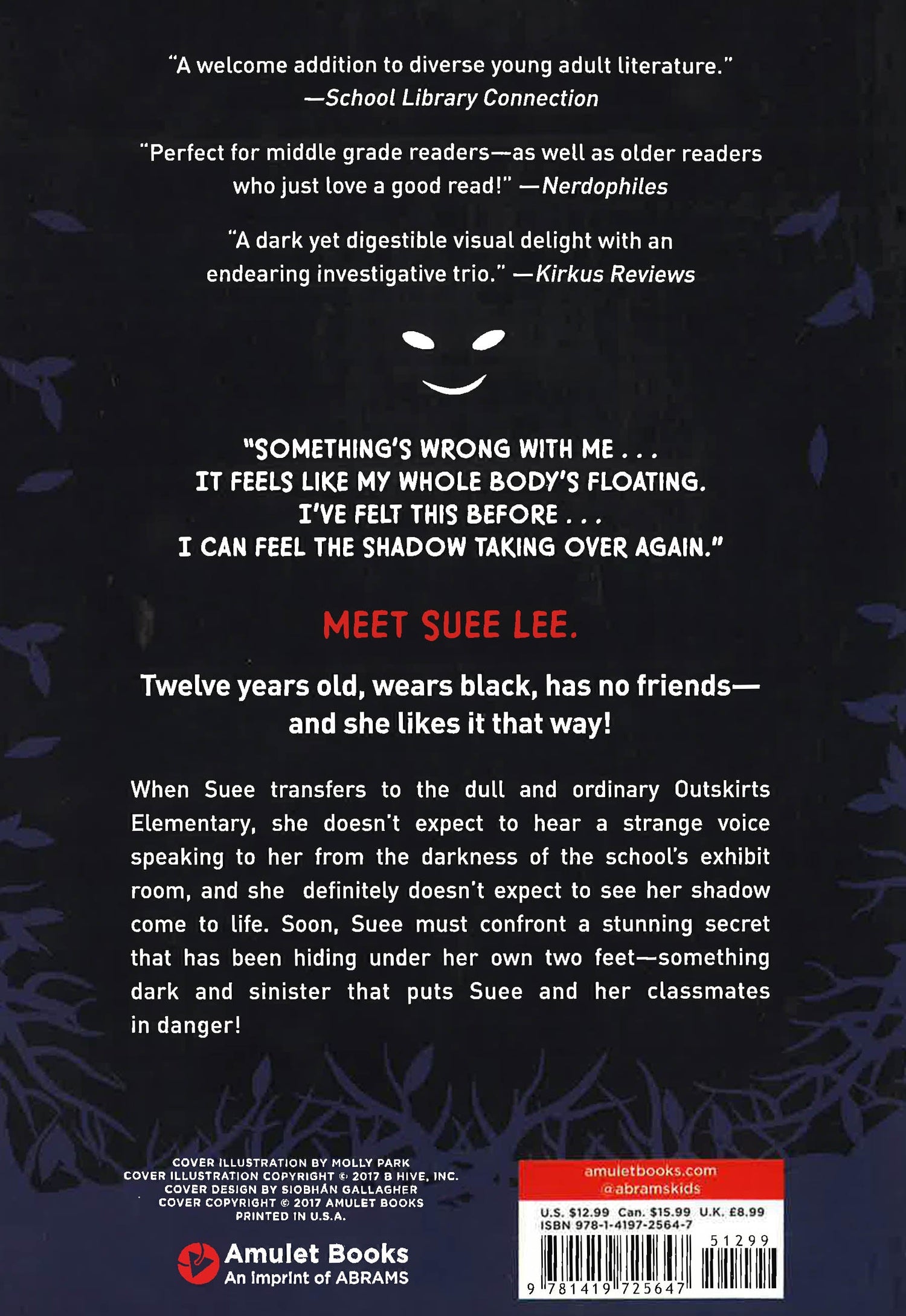 Meet Suee: Twelve years old, wears her hair to the left in a point, favors a black dress, has no friends-and she likes it that way! When Suee transfers to the dull and ordinary Outskirts Elementary, she doesn't expect to hear a strange voice speaking to her from the darkness of the school's exhibit room, and she certainly doesn't expect to see her shadow come to life. Then things start to get really weird: One by one, her classmates at school turn into zombie-like, hollow-eyed Zeroes. While Suee investigates why this is happening, her shadow gains power. Soon, Suee must confront a stunning secret that her shadow has been hiding under her own two feet-something very dark and sinister that could put Suee and her newfound friends at risk!
