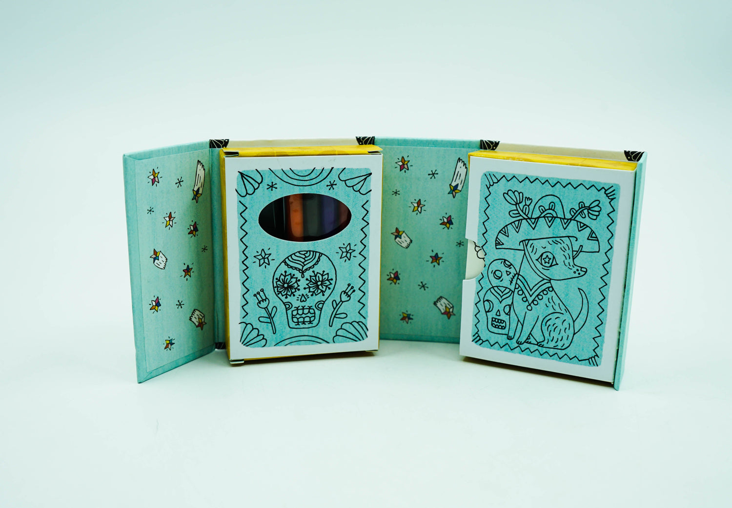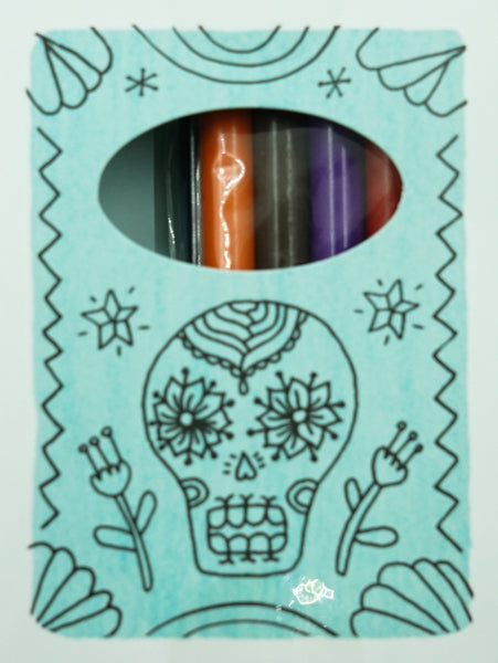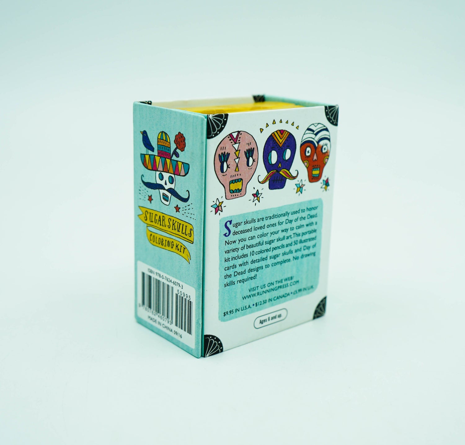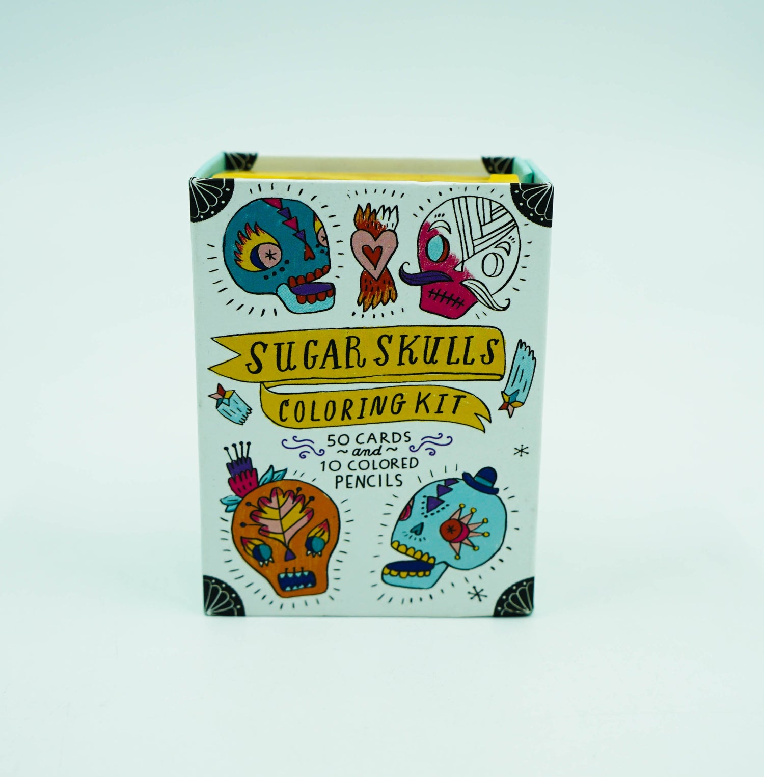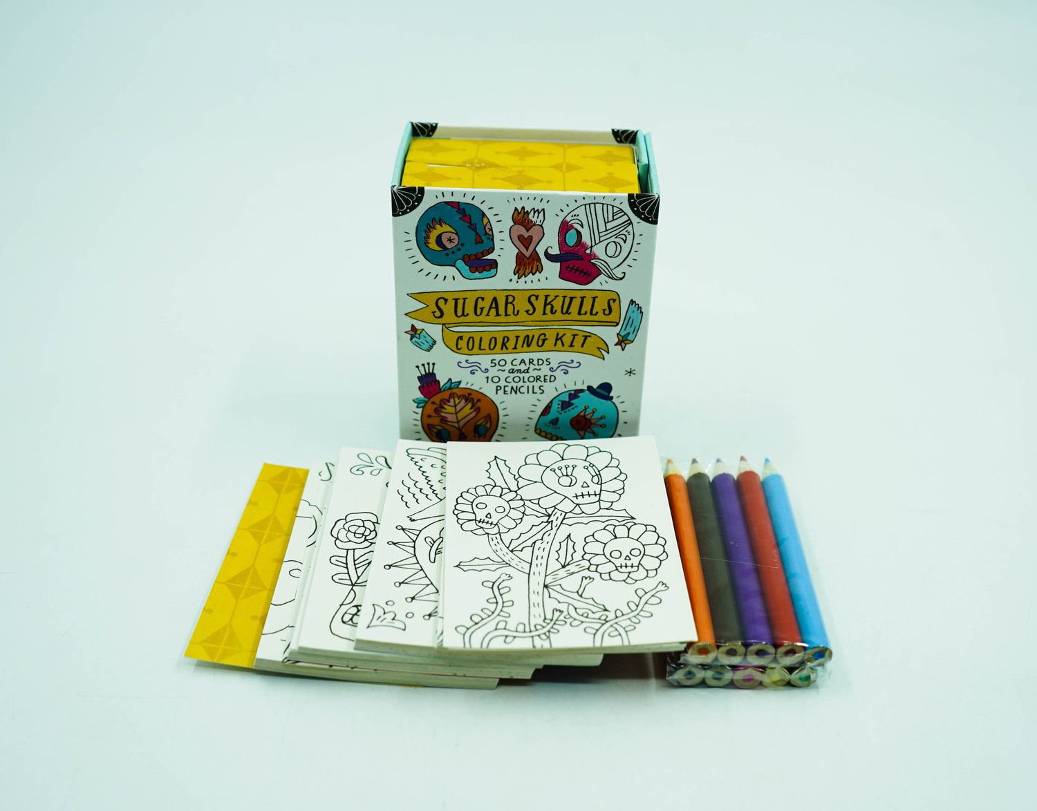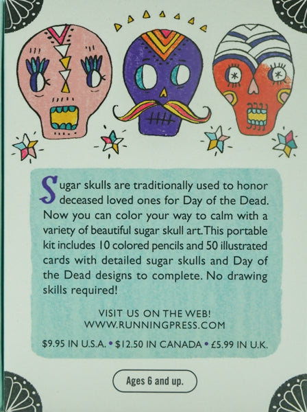 Sugar skulls are traditionally used to honor departed loved ones in central and southern Mexico, specifically for celebrations like Day of the Dead. This mini kit includes 10 colored pencils and 50 illustrated cards with detailed sugar skull and Day of the Dead designs to color and complete. No drawing skills required!