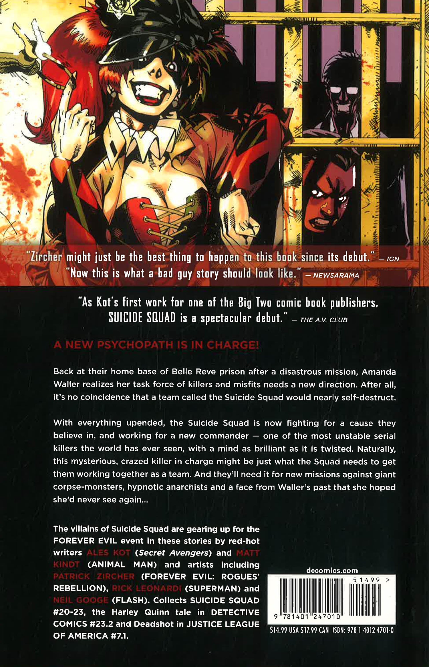 New team members, new direction, new creative team! After the Suicide Squad is nearly massacred, the team returns to Belle Reve to lick their wounds and bury their dead--but when they find out what's waiting for them at the prison, they'll wish they were back out in the field! Task Force X has a new leader, who will make this team of killers and thieves even deadlier than ever before.