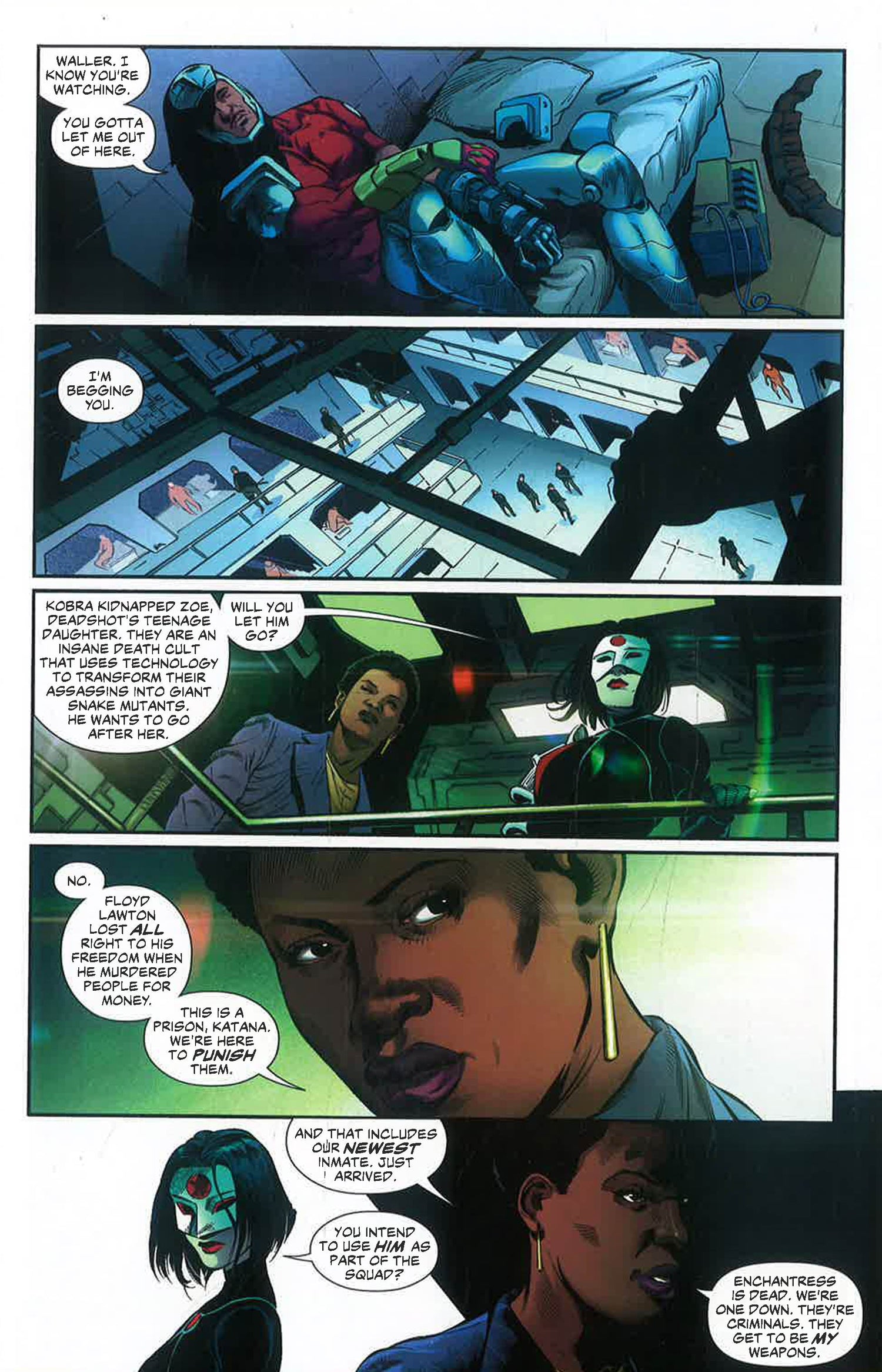 Of course, killing people is Deadshot's thing. Then there's the small matter that while Batman is tracking Kobra, the Suicide Squad and their new field leader Captain Cold are tracking Batman.