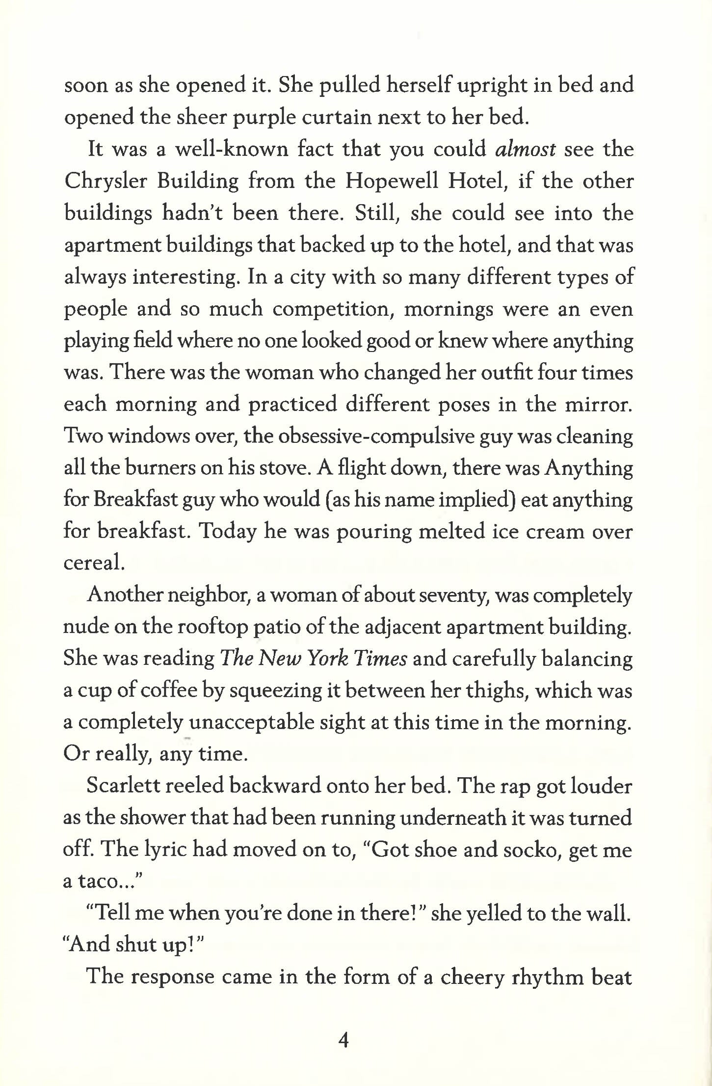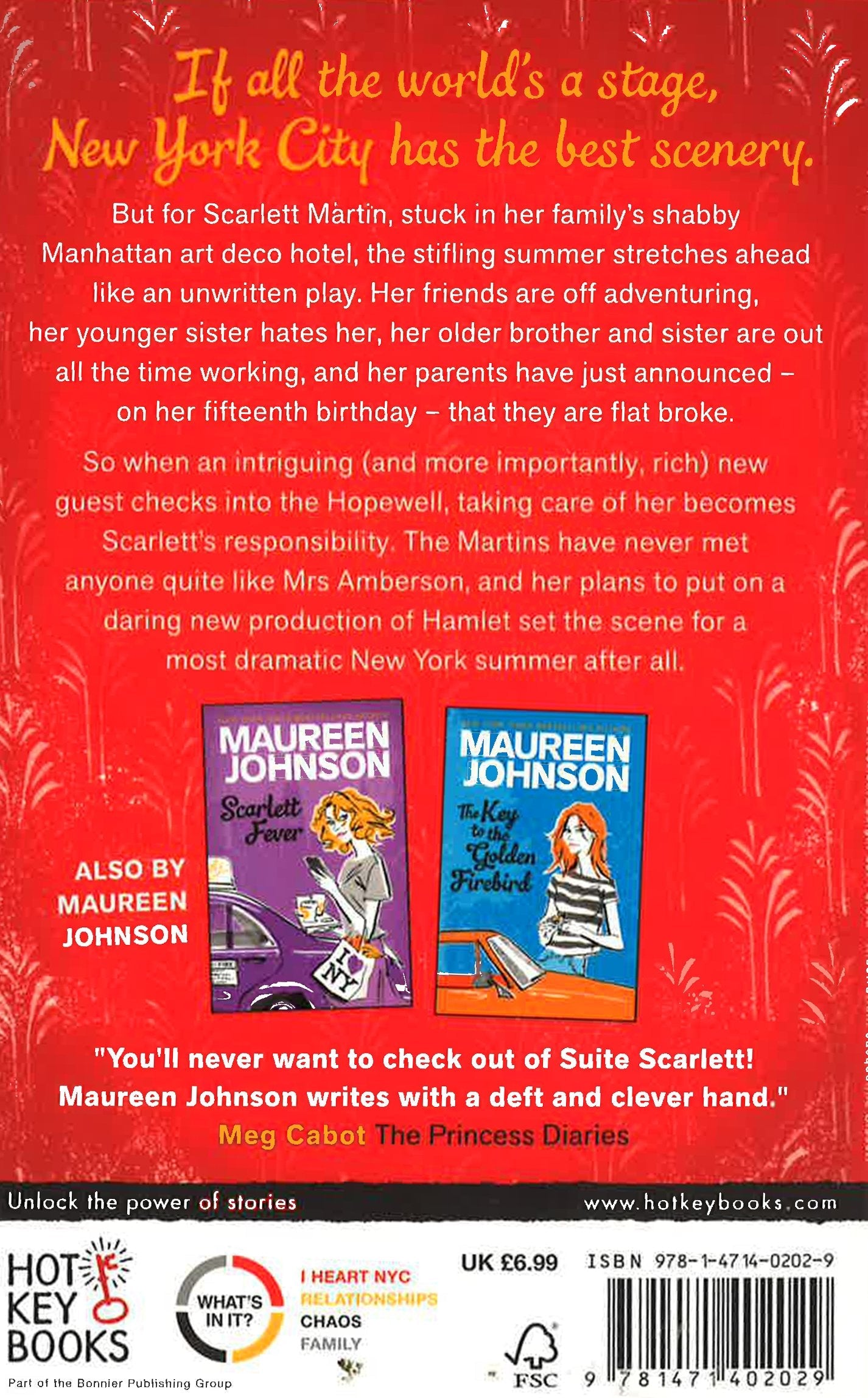 A hilarious romantic comedy set in New York City from the UK Queen of Teen If living in a famous art deco hotel minutes away from Central Park sounds like your idea of a pretty sweet deal - you should talk to Scarlett Martin. Having a hotel for a home really isn't all it's cracked up to be, especially when you've got no guests, no money and no prospects for any fun thanks to your parents putting you to work all summer. Luckily for Scarlett, the Hopewell is about to be shaken to its foundations with the arrival of Mrs Amberson, a glamorous travelling socialite who's planning on putting down some roots for a while - and hiring Scarlett as her assistant. With a new job, new friends, and (maybe) a new boyfriend on the horizon, Scarlett's summer is beginning to look a lot more interesting...