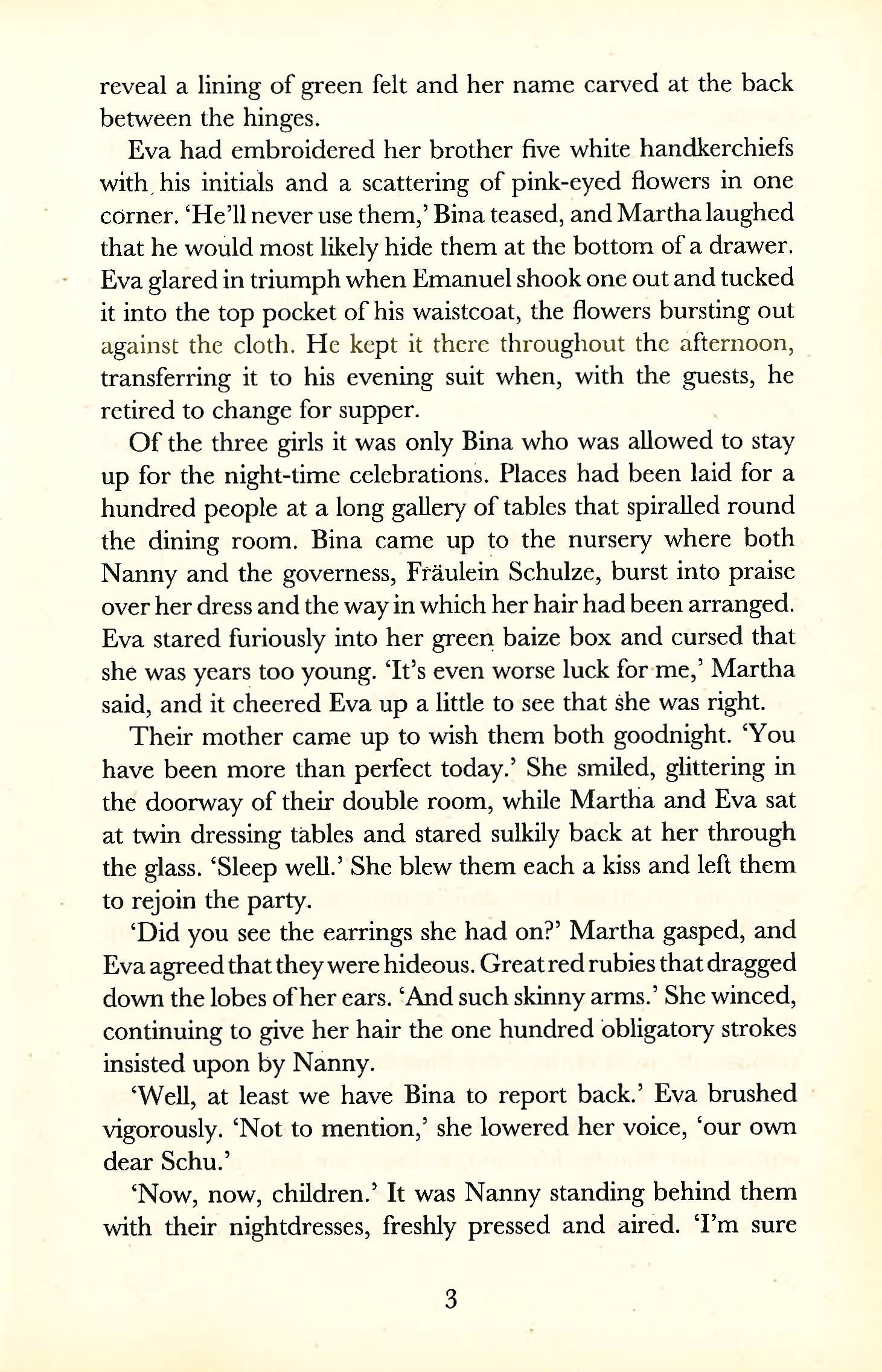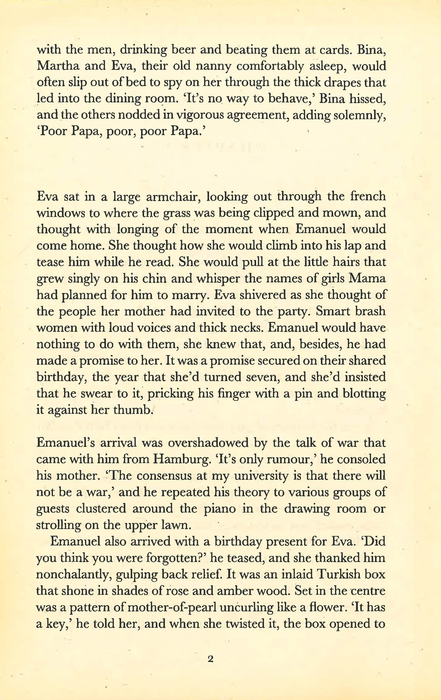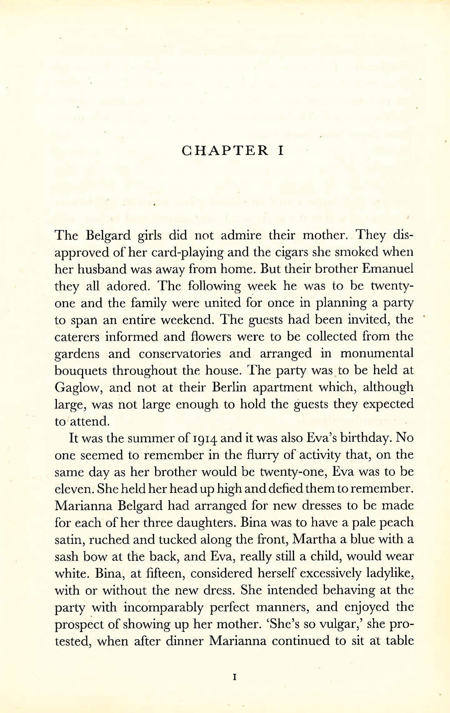 Summer, 1914. It is Emanuel's twenty-first birthday, and eleven-year-old Eva and her sisters are helping transform Gaglow for a glorious party. But their brother's arrival is overshadowed by the talk of war that comes with him from Hamburg, and when he is wrenched from the family to serve his country, Eva knows that nothing will be the same again. Seventy-five years later, with the fall of the Berlin Wall, Sarah's father begins to tell her about Gaglow, the grand East German country estate that will now come back to them. Alternating between Sarah's bohemian life in London and her grandmother's childhood during the First World War, "Summer at Gaglow" unites four generations of an extraordinary family in a tale of loss and love.