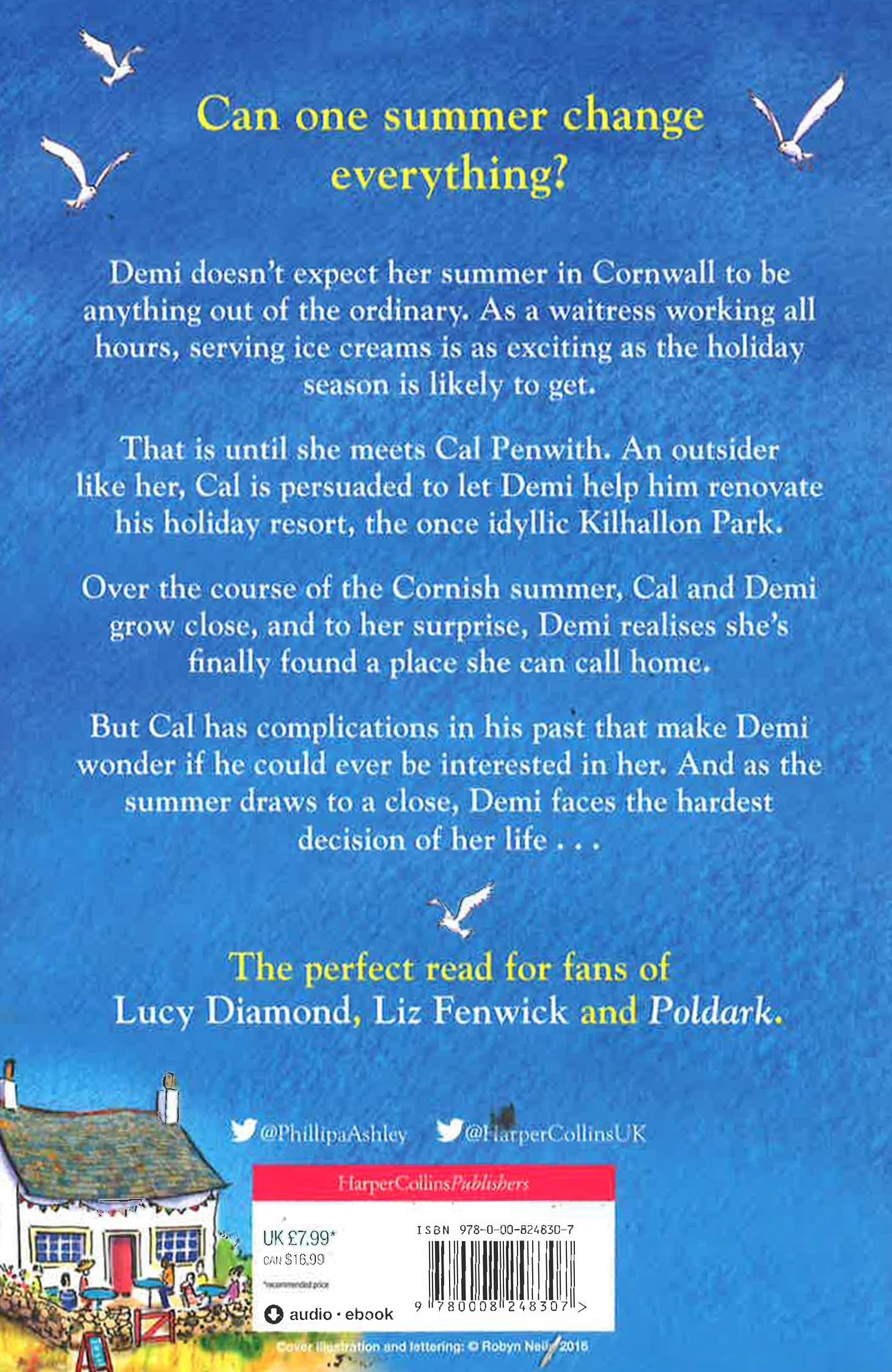 Demi doesn't expect her summer in Cornwall to hold anything out of the ordinary. As a waitress, working all hours to make ends meet, washing dishes and serving ice creams seems to be as exciting as the holiday season is about to get. That's until she meets Cal Penwith. An outsider, like herself, Cal is persuaded to let Demi help him renovate his holiday resort, Kilhallon Park. Set above an idyllic Cornish cove, the once popular destination for tourists has now gone to rack and ruin. During the course of the Cornish summer, Demi makes new friends - and foes - as she helps the dashing and often infuriating Cal in his quest. Working side by side, the pair grow close, but Cal has complications in his past which make Demi wonder if he could ever truly be interested in her. Demi realises that she has finally found a place she can call home. But as the summer draws to a close, and Demi's own reputation as an up and coming cafe owner starts to spread, she is faced with a tough decision . . .