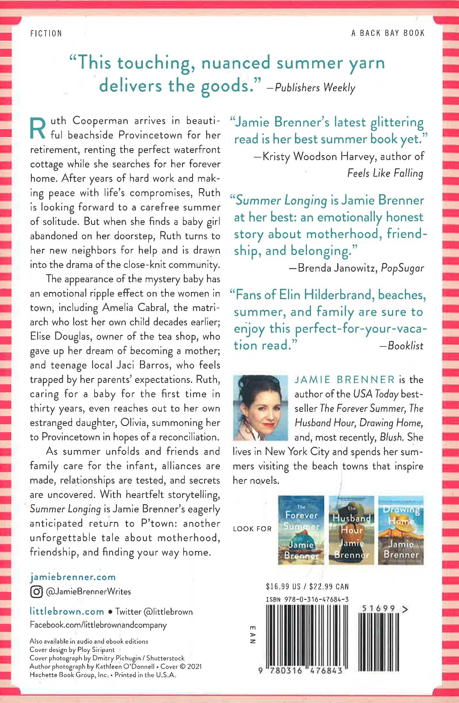 With heartfelt storytelling, Summer Longing is Jamie Brenner's eagerly anticipated return to Provincetown; another unforgettable tale about motherhood, friendship, and finding your way home.