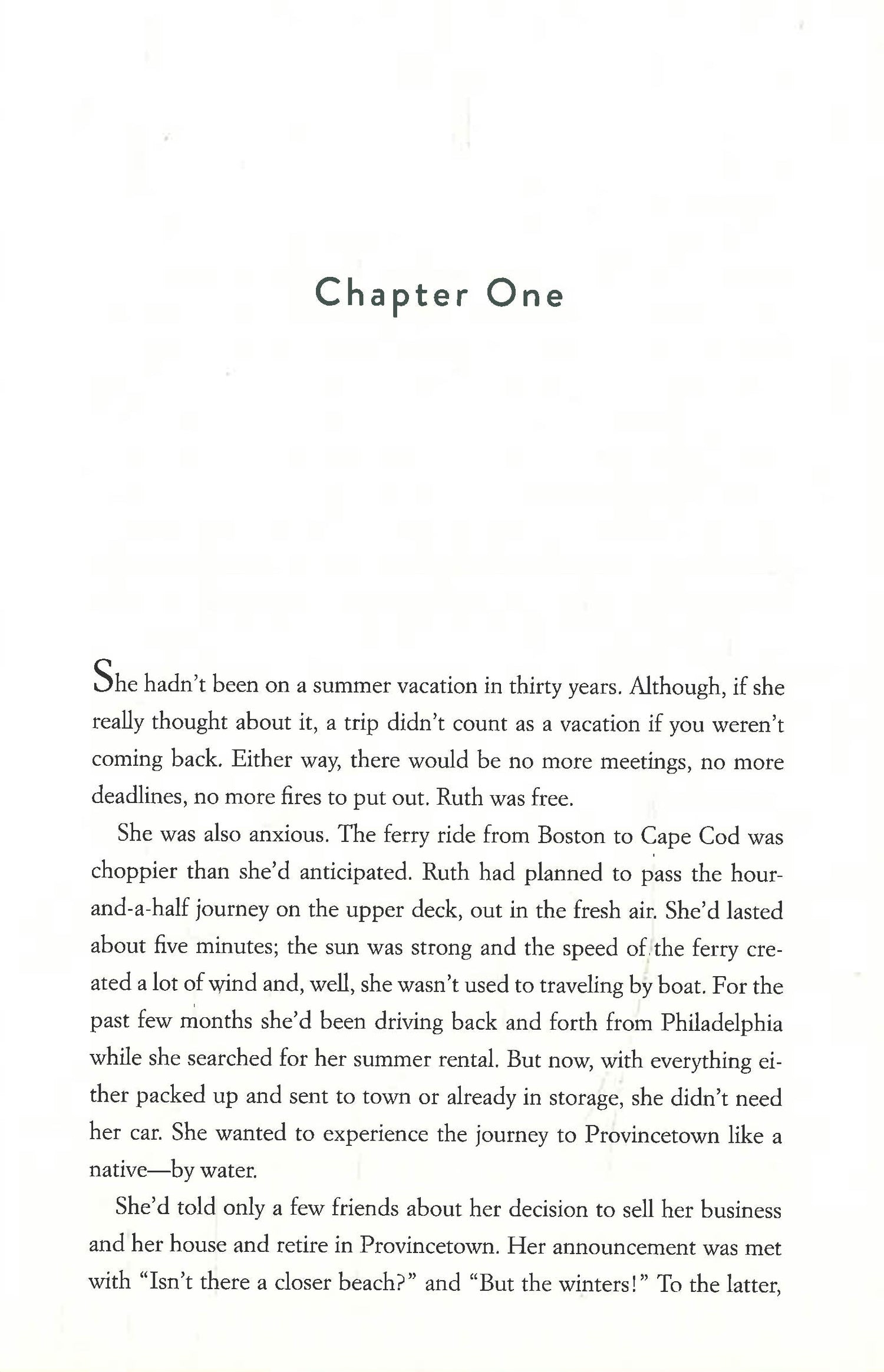 As summer unfolds and friends and family care for the infant, alliances are made, relationships are tested, and secrets are uncovered. But the unconditional love for a child in need just might bring Ruth and the women of Provincetown exactly what they have been longing for themselves.