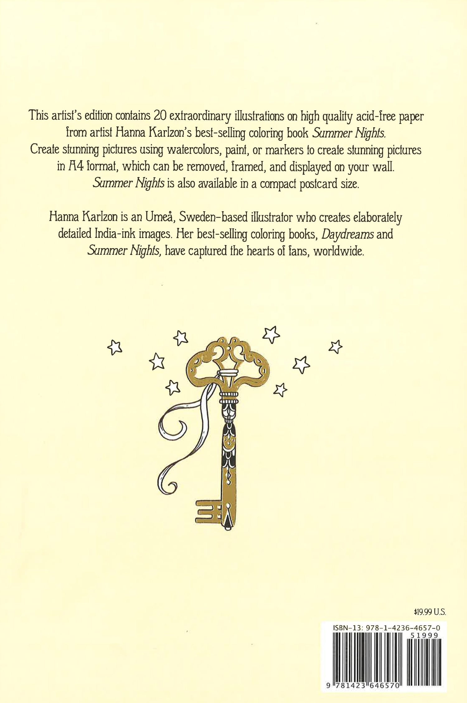 Hanna Karlzon is an Ume?, Sweden-based illustrator and creator of the best-selling coloring books, Dagdr?mmar and Sommarnatt, previously published in Sweden. She creates elaborately detailed images using India ink to detail pictures from her own imagination and loves to draw flowers, forests, houses, and animals. She draws her inspiration from the natural world that surrounds her studio in northern Sweden and adds in some art nouveau, punk rock, and often a hint of '70s design to the mix.