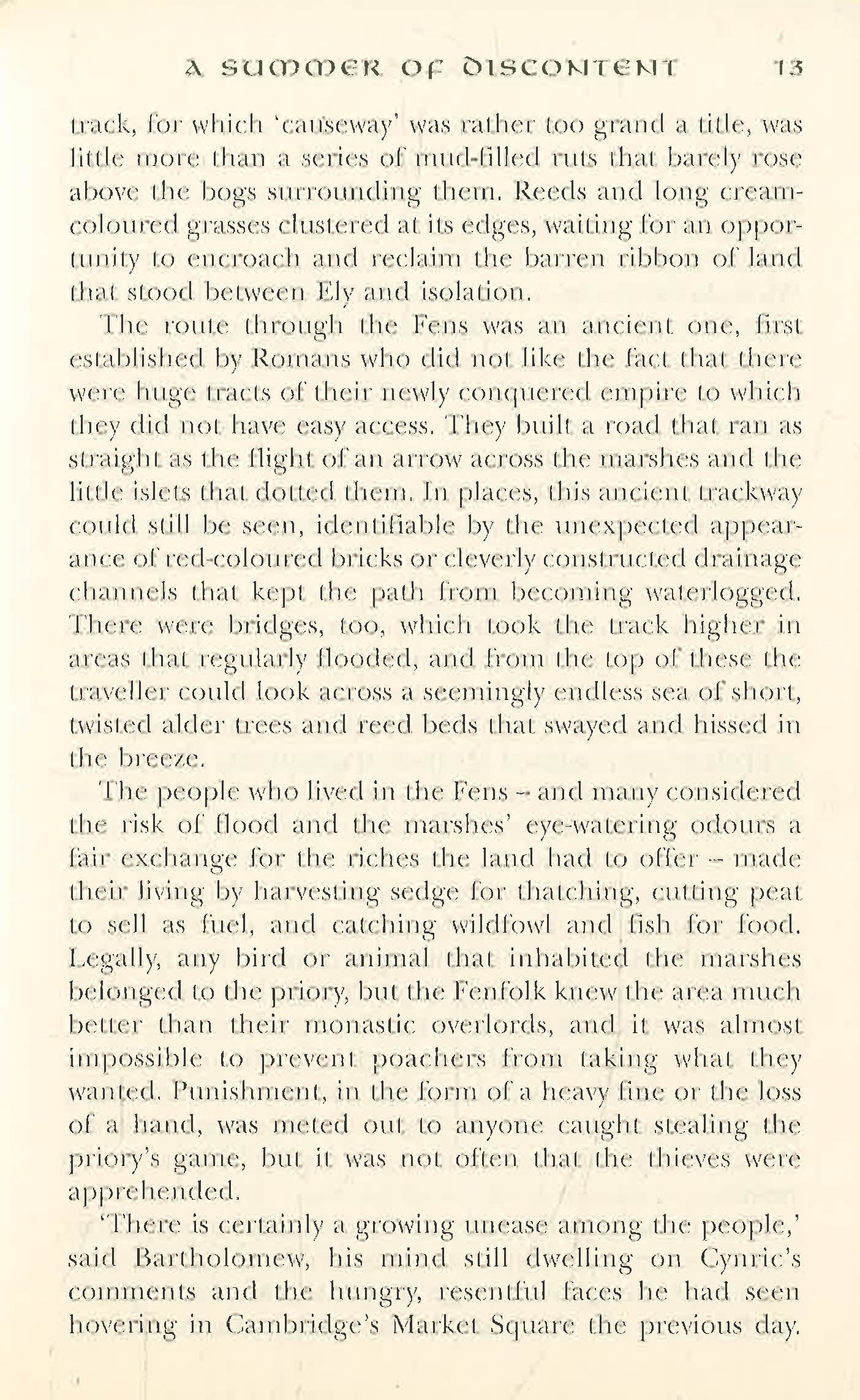 The winter of 1353 has been appallingly wet, there is a fever outbreak amongst the poorer townspeople and the country is not yet fully recovered from the aftermath of the plague. The increasing reputation and wealth of the Cambridge colleges are causing dangerous tensions between the town, Church and University.