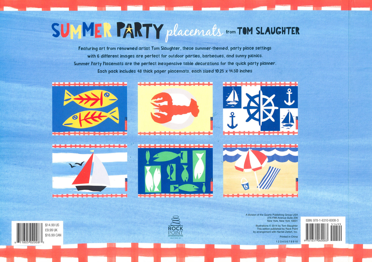 Featuring art from renowned artist Tom Slaughter, this set of whimsical placemats will add something extra to your tablescape. These summer-themed party place settings with 6 different images are perfect for outdoor parties, barbecues, and sunny picnics. Disposable for easy clean up, Summer Living Placemats are the perfect inexpensive table decorations to wow all your guests. Each pack includes 48 thick paper placemats, each sized 10.25 x 14.75 inches.