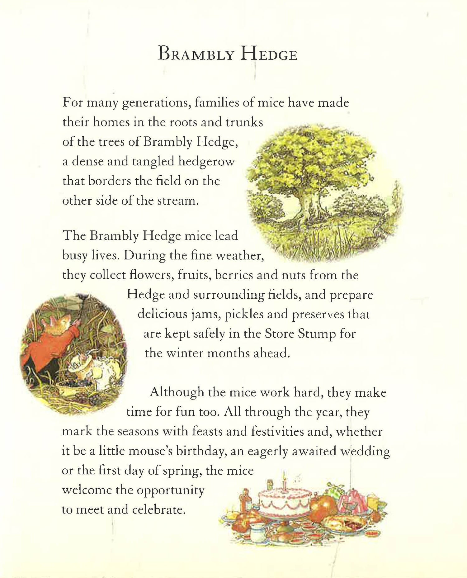 A beautiful new cover reissue of this classic book, celebrating thirty years of the mice of Brambly Hedge It was such a hot summer. The sky was deep blue and the sun never faltered. All along Brambly Hedge, the mice did their best to keep cool. Poppy Eyebright sought refuge in the mossy shadows of the mill wheel; Dusty Dogwood took to walking by the banks of the cooling stream. Dusty and Poppy spent more and more time together, so no one was at all surprised when they announced their engagement. They decided on a very unusual setting for the wedding ceremony, but even they didn't realize just how unusual it would prove to be! Despite some unexpected developments, the summer wedding of mice Poppy and Dusty goes off beautifully.