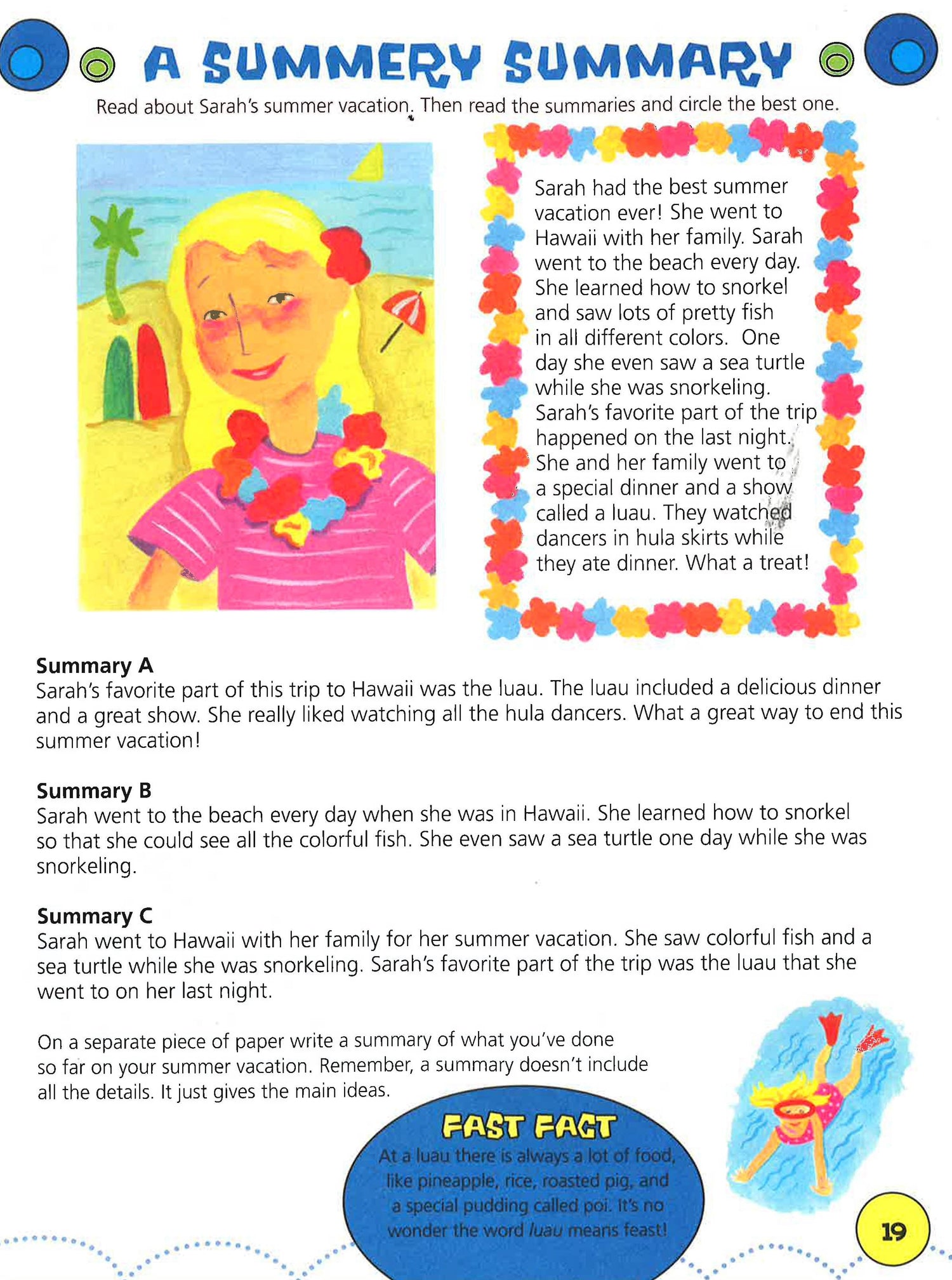 Summer Skills Workbooks offer practice in reading, writing, math, science, and more. “Fast Fact” and “On Your Own” features build on the book's themes and activities.