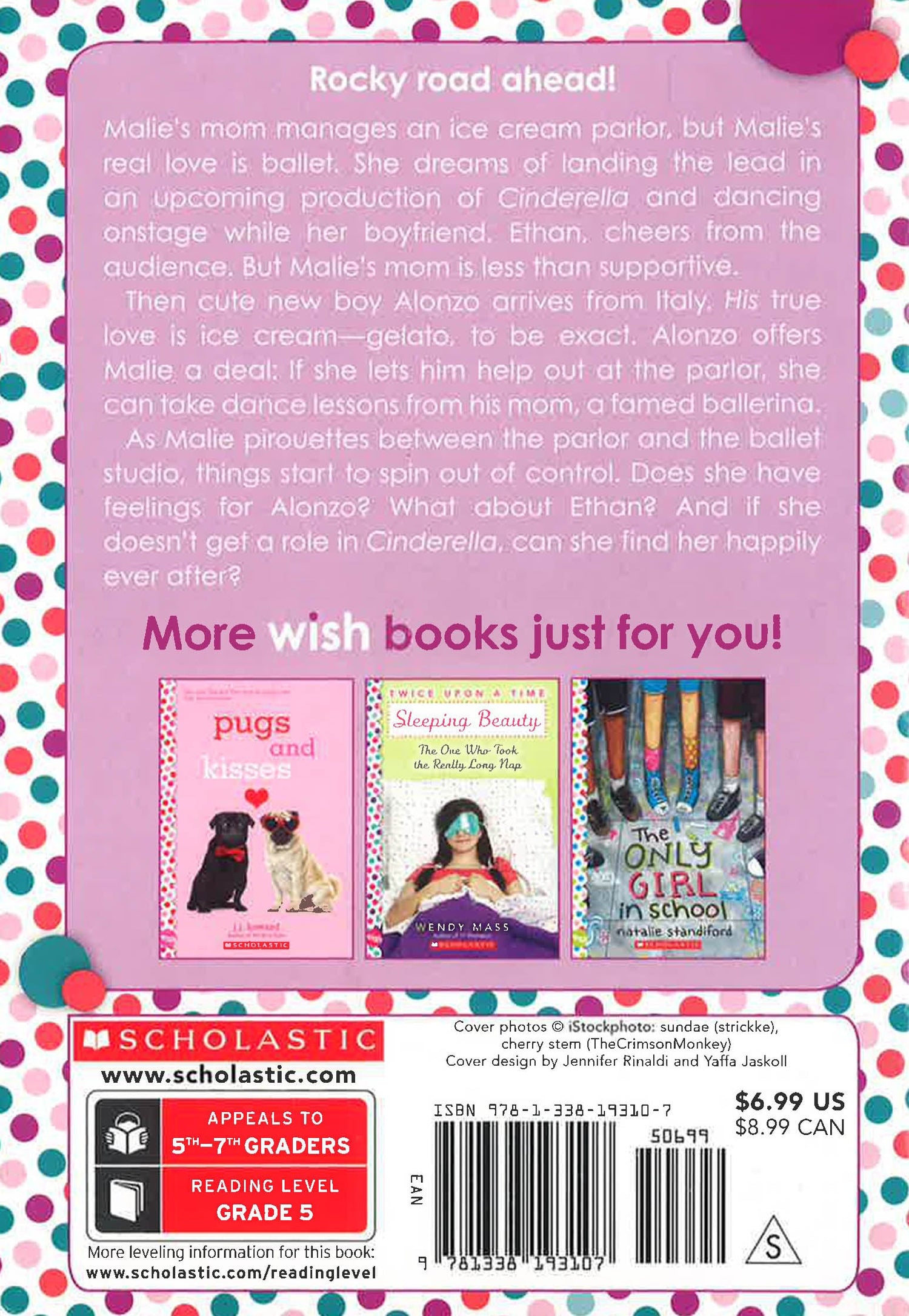 Nelson delivers another sweet, "foodie" tween Wish romance, this time with ice cream, ballet, friends, and happily-ever-after. Suzanne Nelson delivers another sweet, foodie tween romance for our WISH line, this time with ice cream, ballet, friends, and happily-ever-after.Malie's mom manages an ice cream parlor, but Malie's real love is ballet. She dreams of landing the lead in an upcoming production of Cinderella and dancing onstage while her boyfriend, Ethan, cheers from the audience. But Malie's mom is less than supportive. Then cute new boy Alonzo arrives from Italy. His true love is ice cream -- gelato, to be exact. Alonzo offers a Malie a deal: If she lets him help out at the parlor, she can take dance lessons from his mom, a famed ballerina. As Malie pirouettes between the parlor and the ballet studio, things start to spin out of control. Does she have feelings for Alonzo? What about Ethan? And if she doesn't get a role in Cinderella, can she find her happily ever after?