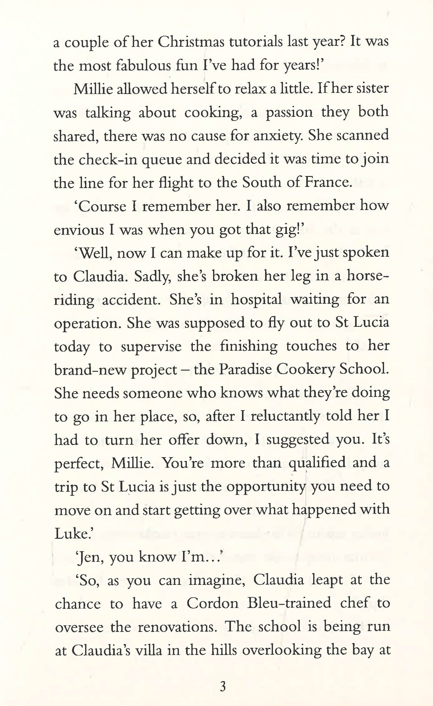 When newly heartbroken chef Millie Harper is offered a job overseeing the launch of The Paradise Cookery School she jumps at the chance. Leaving her ex behind Millie jets off to the hilltop cocoa plantation in St Lucia.