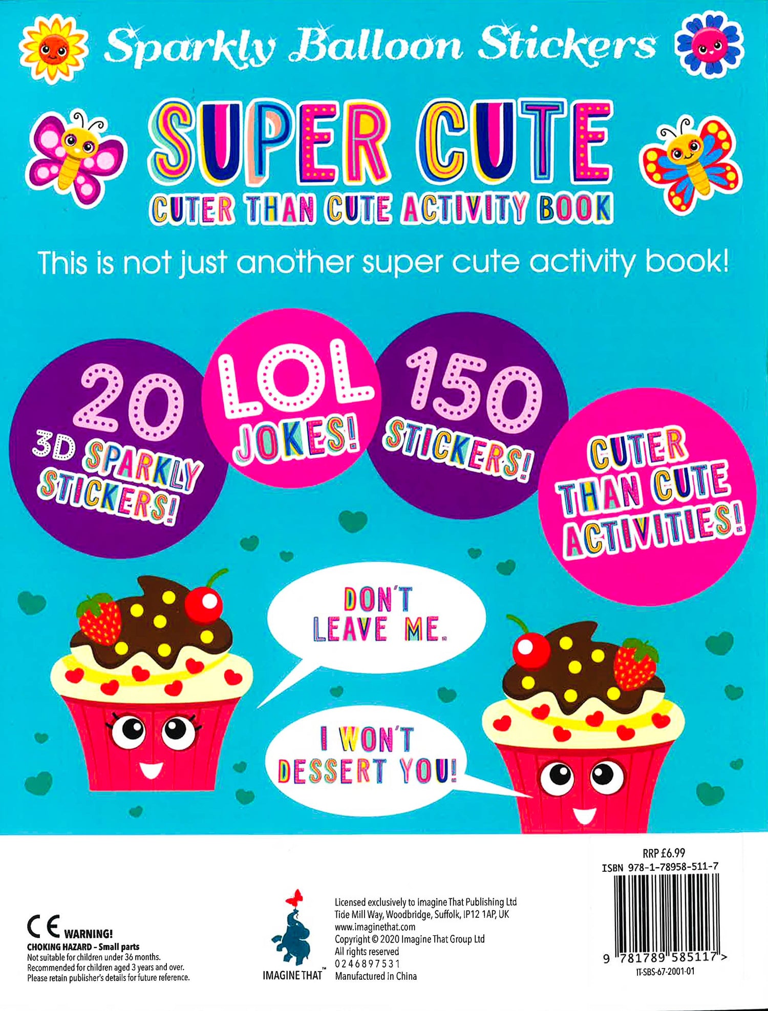 A cuter-than-cute activity book packed with adorably cute activities and jokes, over 100 stickers and 20 sparkly 3D balloon stickers!With cute-themed activities, colourful stickers, hilarious jokes and 3D sparkly stickers - this is not just another cute activity book ... this is a cuter-than-cute activity book! There are funny jokes to make you laugh out loud, and over 100 colourful cute stickers to find, choose and position as you complete the adorable puzzles and activities. Have sticker fun with the 20 sparkly 3D balloon stickers and use them to decorate your books, your stuff ... anything you like!