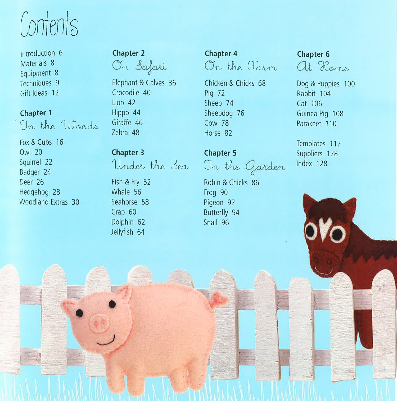 Super-Cute Felt Animals shows you how to create creatures from the land, sea, and air, including fish, birds and animals, from the forest to the jungle, the farmyard and your home. Woodland creatures include a crafty fox, a sweet bear and cubs, and extras such as a toadstool and acorns to complete the woodland scene. Go on a felt safari to see lions with golden manes, zebras, and hippos that you can recreate in colourful fabric. From under the sea, there are whales, seahorses, and jellyfish, along with a set of fish and their fry, with sequins for scales. On the farm, cows, pigs, and ducks are joined by a raggedy scarecrow, while in the garden, there's everything from insects to frogs and birds to be made. Pets are included - from puppies to guinea pigs, and even goldfish in a bowl. There are projects for all skill levels, and each design has clear, illustrated step-by-step instructions.
