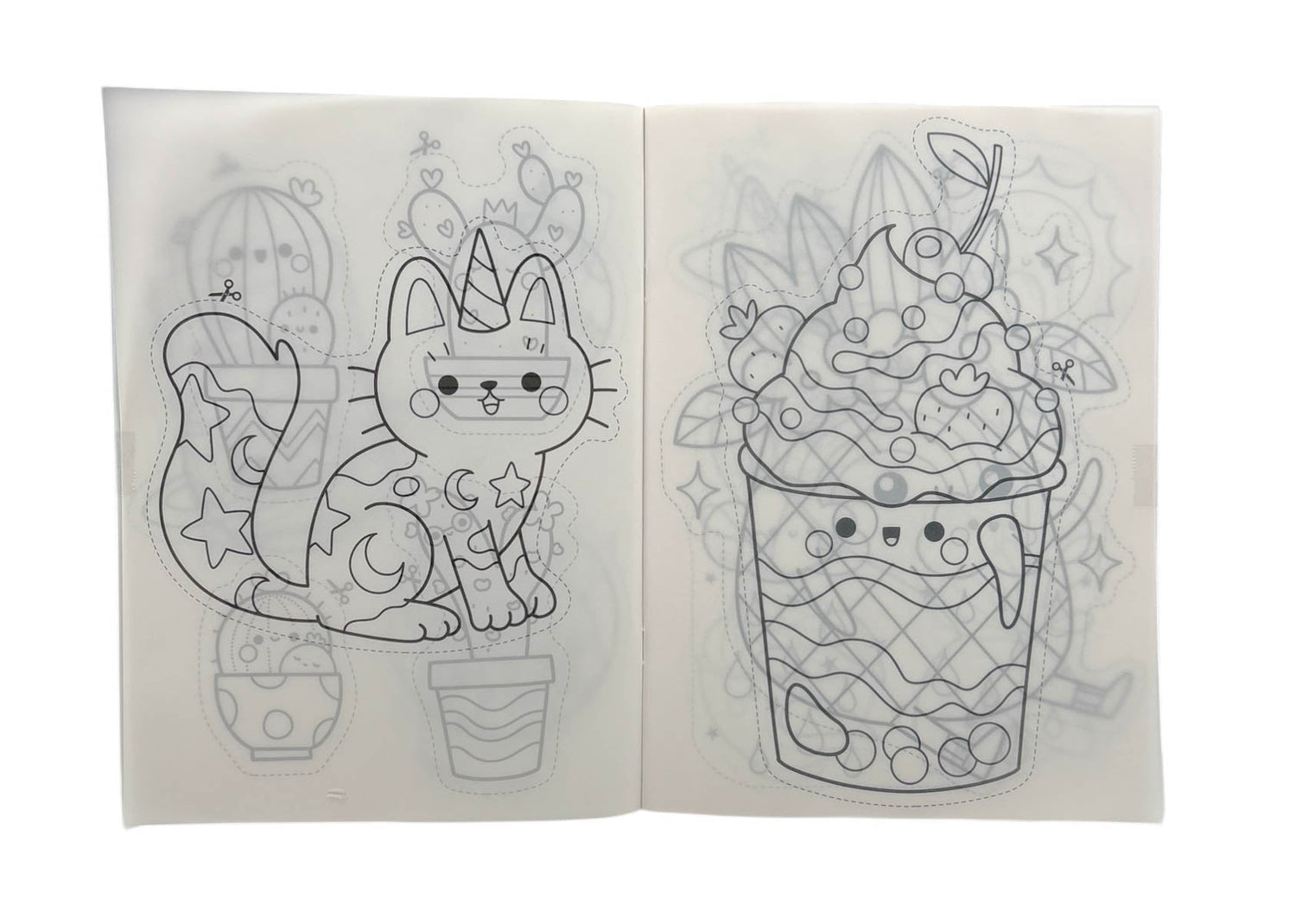 With a transparent cover and pages, this book offers a magical and interactive experience that will captivate young artists and adults alike. As you color in the super cute characters, leave small areas see-through, allowing the black line art to add an extra dimension to your artwork.