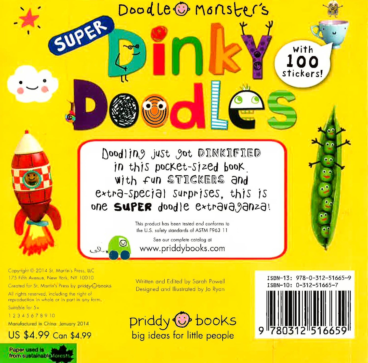 A chunky, pocket-sized doodle book for doodling fun, anytime, anywhere! This on-the-go book has pages of photographic and illustrated doodle starts, plus over 100 decorative stickers to use. Super Dinky Doodles includes creatively shaped die-cuts, which can be used to stencil shapes onto neighboring pages.