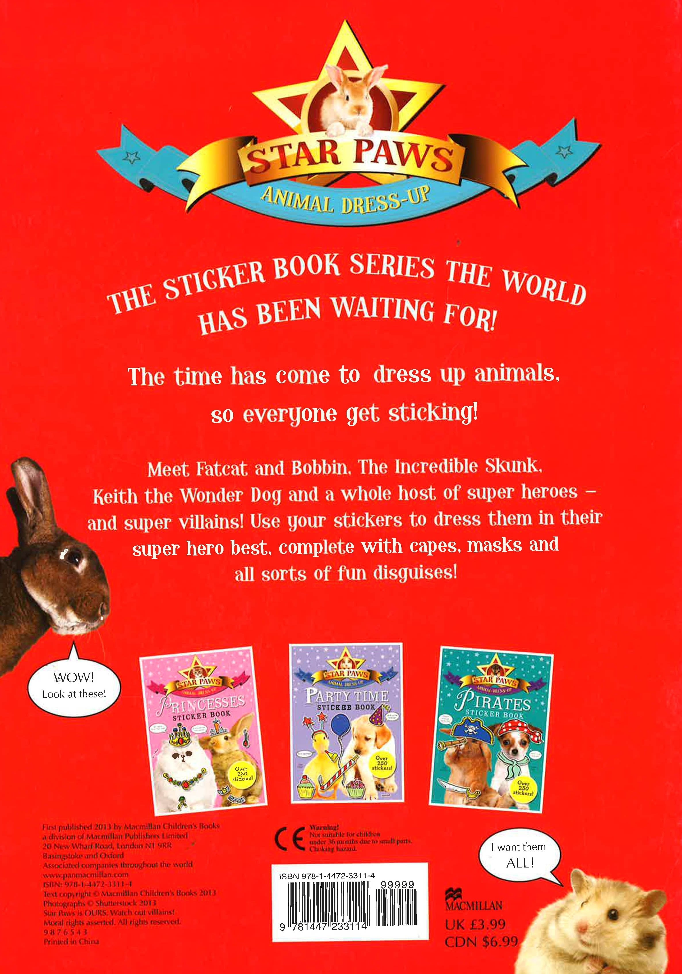 Brace yourselves for STAR PAWS: SUPER HEROES! Meet Fatcat and Bobbin, The Incredible Skunk, Keith the Wonder Dog and a whole host of superheroes (and super-villains!). Use your stickers to dress them in their superhero best, complete with capes, masks and all sorts of fun disguises!